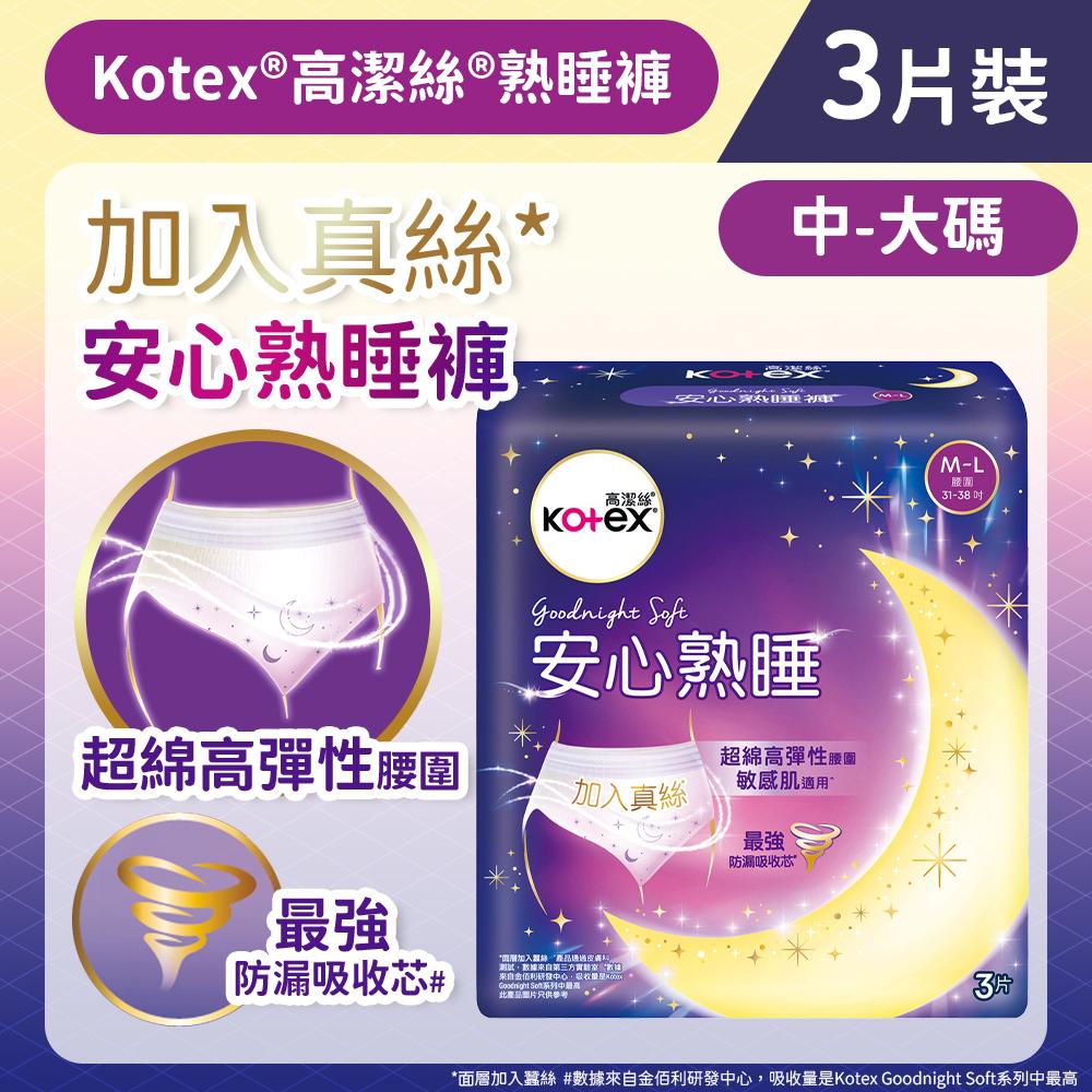/ 加入真絲* 貼近肌膚的絲滑觸感 / 敏感肌適用^ 通過皮膚科學測試,360°呵護細嫩肌膚 / 超綿高彈性腰圍 仿內褲剪裁,包裹貼服,透氣無痕 / 最強防漏吸收芯# 特長超薄巾身,全晚瞬吸守護 / 尾翼3D彎月綿墊 完美封截後漏 / 3D瞬吸圈配合立體側邊 兩大防線阻截回滲側漏 / 敏感肌適用^ 通過皮膚科學測試,呵護細嫩肌膚 / 透氣不焗促 百萬透氣孔,肌膚自在呼吸 *面層加入蠶絲 ^產品通過皮膚科學測試,數據來自第三方實驗室 #數據來自金佰利研發中心,吸收量是Kotex Goodnight Soft系列中最高