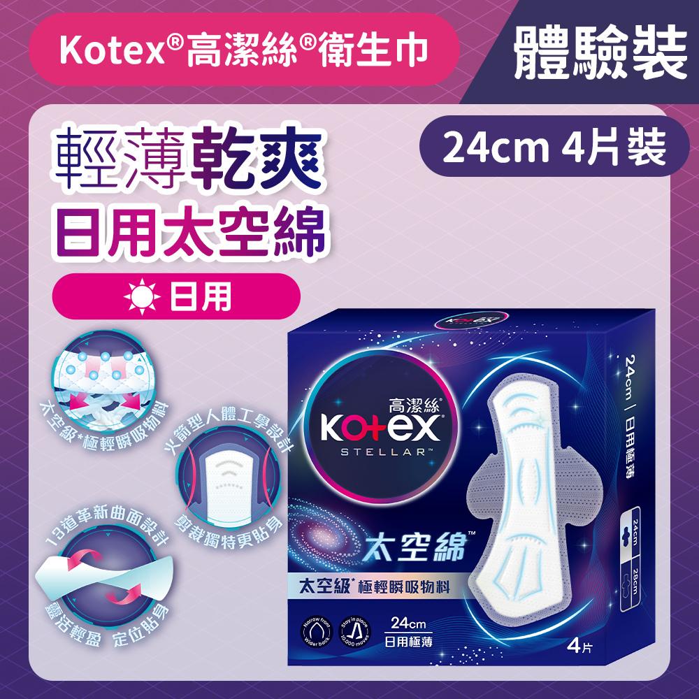 1. 吸收後依然輕薄乾爽 太空級*極輕瞬吸材料 *太空綿是指Kotex依據太空概念研發之極輕衛生巾品牌,非指特定/單一材質或成份。 2. 前窄後寬 減低摩擦感 火箭型人體工學設計 剪裁獨特更貼身 3. 行走萬步 無懼移位變形# 13道革新曲面設計 靈活輕盈 定位貼身 #數據來自金佰研發中心,變形程度顯著低於Kotex Air系列