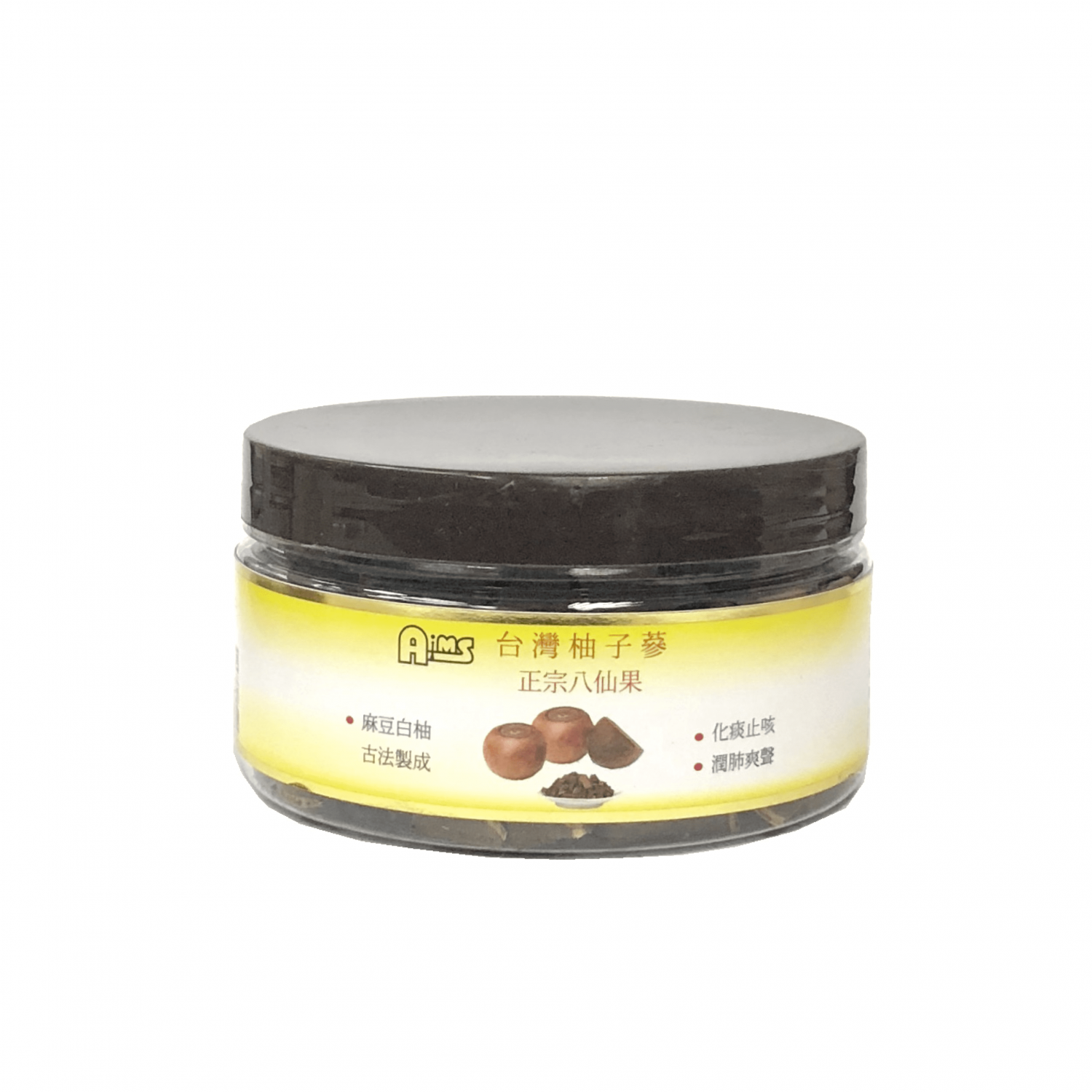 本產品傳承百年手藝, 用正宗白柚子經九蒸九晒九烘精煉而成, 成份天然, 含豐富維生素A、C, 潤喉生津止渴, 無添加澱粉或人工香料。 成份: 柚子, 金棗, 香櫞, 紫蘇, 甘草, 陳皮, 金桔, 川貝, 檸檬, 佛手