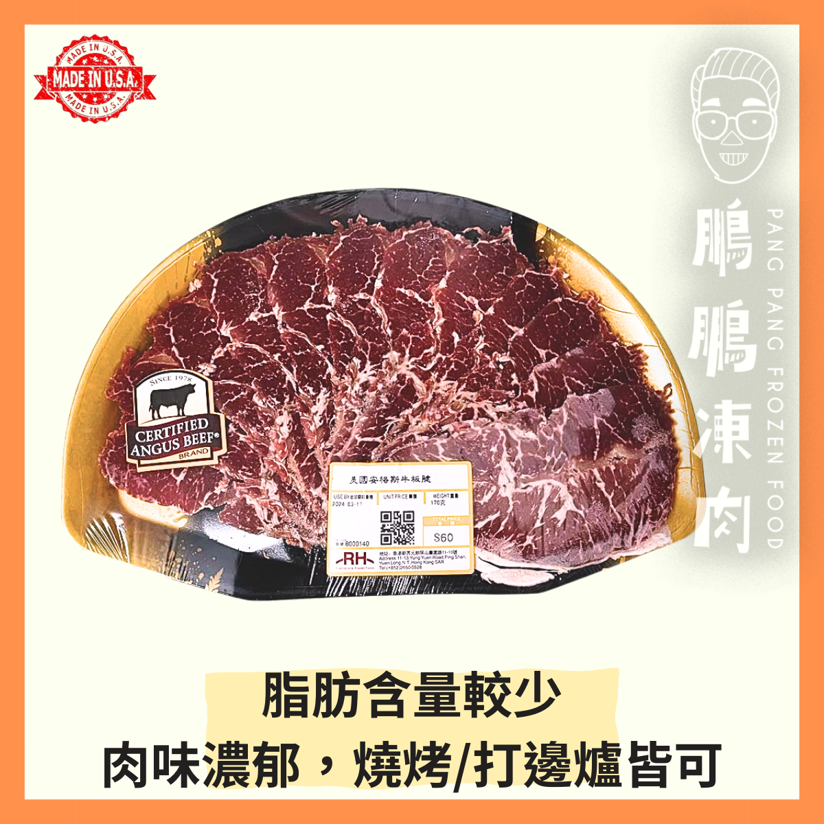 脂肪含量較少,肉味濃郁,燒烤/打邊爐皆可