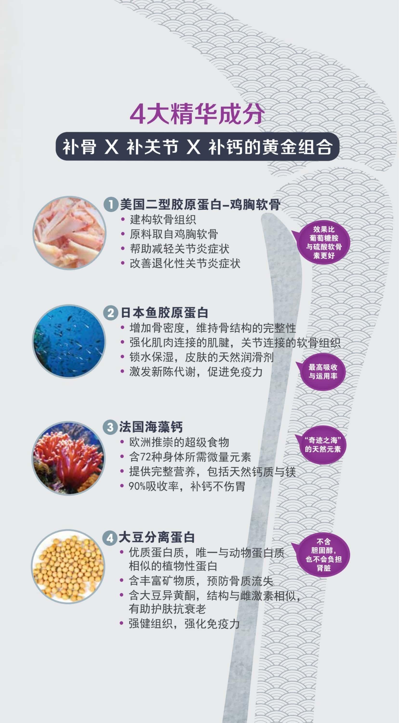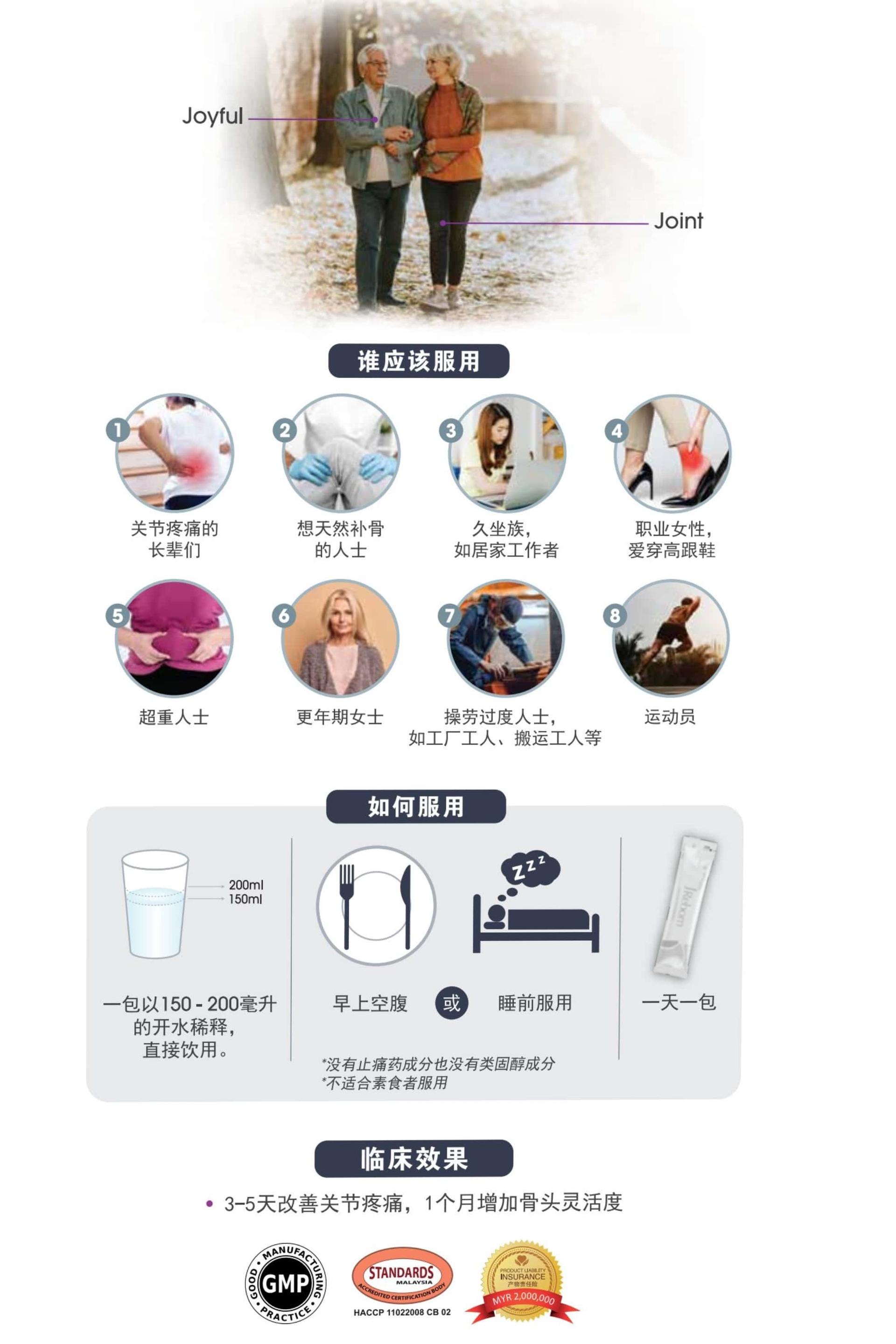 JReborn 全方位補骨效果 針對關節炎及風濕痛抗發炎止痛 增強骨頭密度 避免骨骼疏鬆症 避免老年骨折問題 幫助鈣質更好吸收、減緩流失 刺激軟骨增生 減少關節摩擦 避免鈣質吸收不良形成腎結石 *不含止痛藥、類固醇成分、荷爾蒙