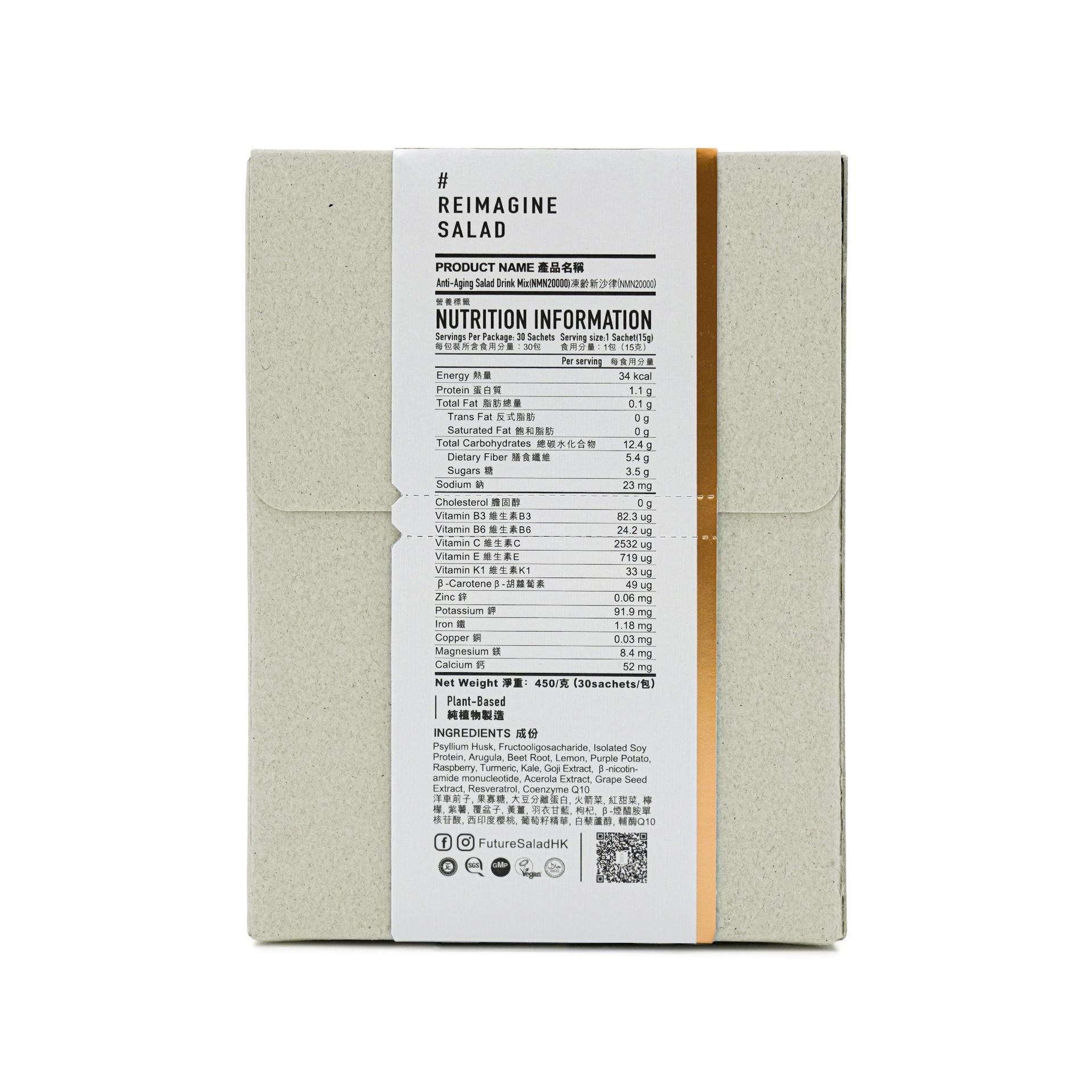 產品認證: Future Salad 凍齡新沙律飲由香港GMP廠房製造,通過STC優質「正」印品質認證,並榮獲Certified Vegan素食認證、SGS檢測認證及Halal清真認證等多項權威認證,更入選2020香港新星品牌,於眾多同類型產品脫穎而出,絕對是信心之選。