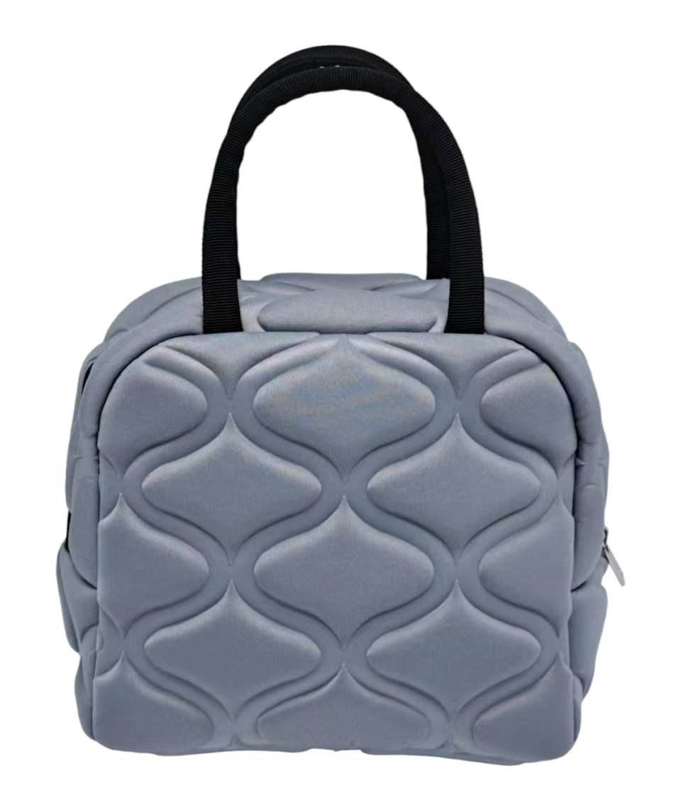 此大號保溫便當袋輕巧,方便攜帶,淨色簡略黑灰風格配以具有特色的菱形壓花紋,提高時尚感。適合各年紀使用。優質耐用單向拉鏈,配以內裏特強保溫間層,已通過德國安全標準,比一般保温產品持久耐用。