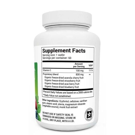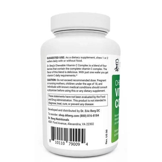 補充劑 • 威化餅 • 清真認證,非轉基因,有機漿果 • 2 個月用量 使用Dr. Berg 咀嚼維生素 C 複合物,可增強維生素 C 和抗氧化劑。這種優質維生素 C 複合物由四種營養豐富的漿果製成:有機針葉櫻桃、有機巴西莓、有機草莓和有機藍莓。所有年齡段的人都可以通過這些美味的咀嚼片享受維生素 C 的好處。每瓶含有 60 份。漿果混合物是非轉基因的,無麩質,素食主義者友好,並且不添加糖!