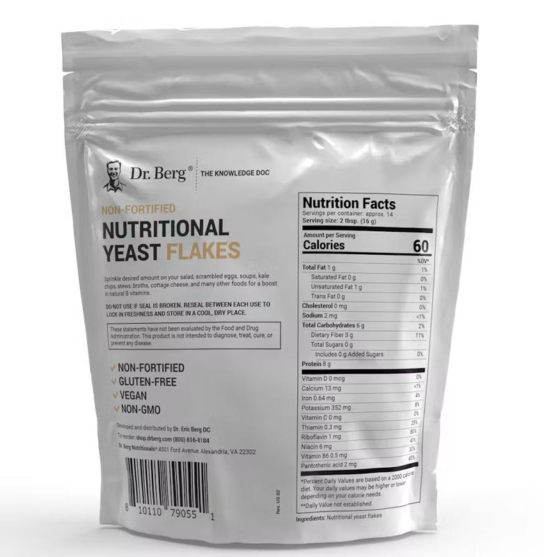 使用Dr. Berg 營養酵母片,增加風味和營養。我們的營養酵母是非強化的,富含天然礦物質和B族維生素。在你最喜歡的食物上撒一些,讓家常菜栩栩如生。每袋包含14份美味的食物。美國製造,無麩質,素食主義者友好,非轉基因。 描述 使用Dr. Berg 營養酵母片是支援健康身體的美味方式。每份都富含 B 族維生素、微量礦物質、氨基酸和纖維。與其他富含合成B族維生素和添加劑的營養酵母產品不同,我們的營養酵母僅含有自然界中的維生素和礦物質。這最大限度地提高了營養吸收和生物利用度。 您一定會愛上我們營養酵母片的鹹味。在你最喜歡的食物上撒一些,讓家常菜栩栩如生。美味的乳酪和堅果味與沙拉、烤蔬菜、湯、醬汁、砂鍋菜、雞蛋、羽衣甘藍薯片等完美搭配。 每袋營養酵母片包含 14 份。我們的營養酵母不含麩質、素食主義者、酮症友好、非轉基因,並在美國製造。