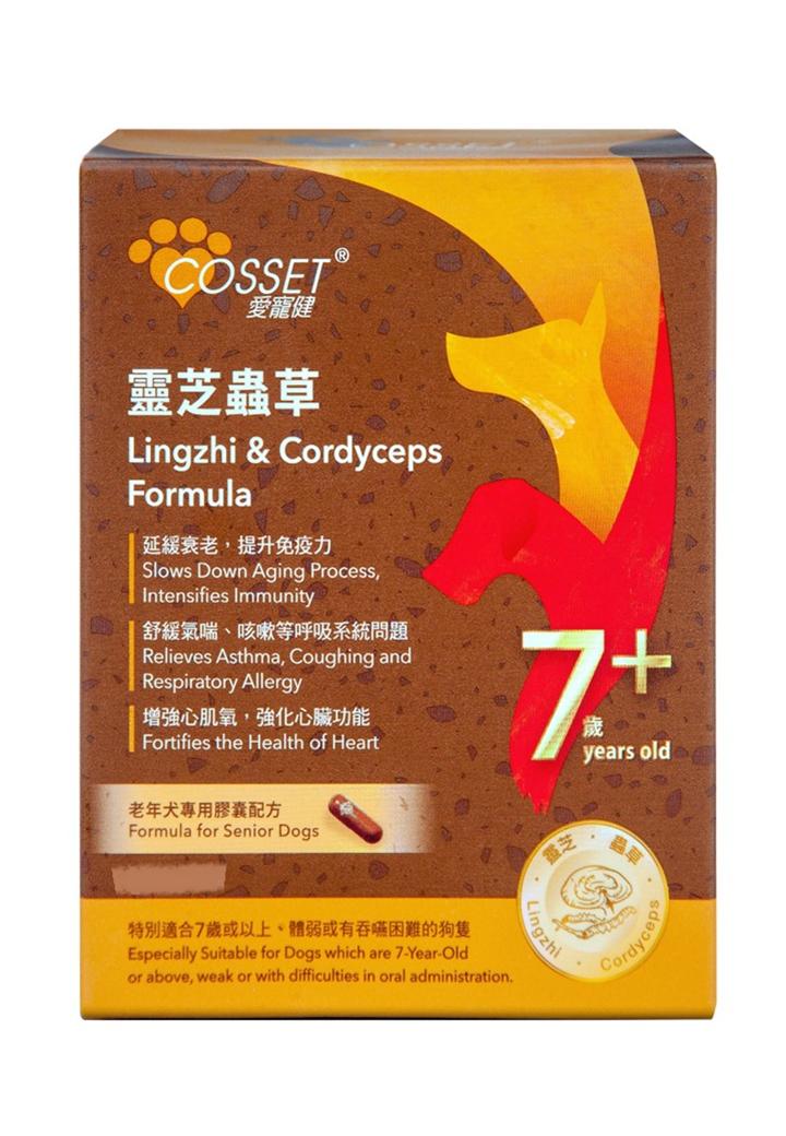 劑形 : 膠囊 (粉狀) 特別適合對象:有吞嚥困難、腸胃敏感、吸收能力 較差或患有長期疾病的犬隻 (如老年犬、患病初癒或手術後的 犬隻) 狗隻由中年時開始服用靈芝、蟲草,能增強抵抗力、 強化機能,對延緩腦部退化有莫大幫助。 1. 改善氣喘和呼吸系統問題 2. 增強免疫力來對抗患病風險 3. 幫助肝臟的解毒素 4. 調節代謝、改善毛囊健康及延緩毛髮的褪色 5. 強腎補肺,舒緩尿頻或失禁 6. 安神、緩和情緒 7. 强化心臟功能