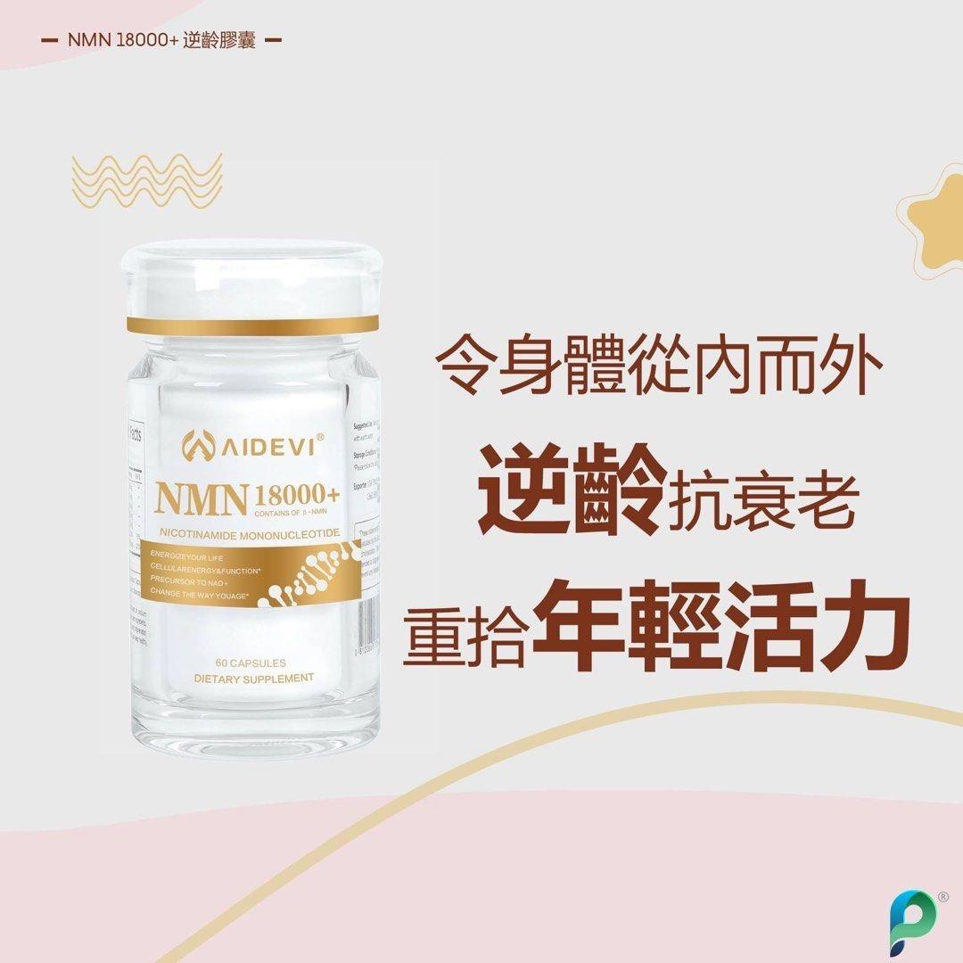 AideviNMN18000+逆齡膠囊,蘊含高濃度NMN 成分,搭配其他重要元素白藜蘆醇(100mg)、 PQQ(15mg)、果蔬粉(50mg)及花青素(20mg),產生協同效應,令身體從內而外逆齡抗衰老,重拾年輕活力。