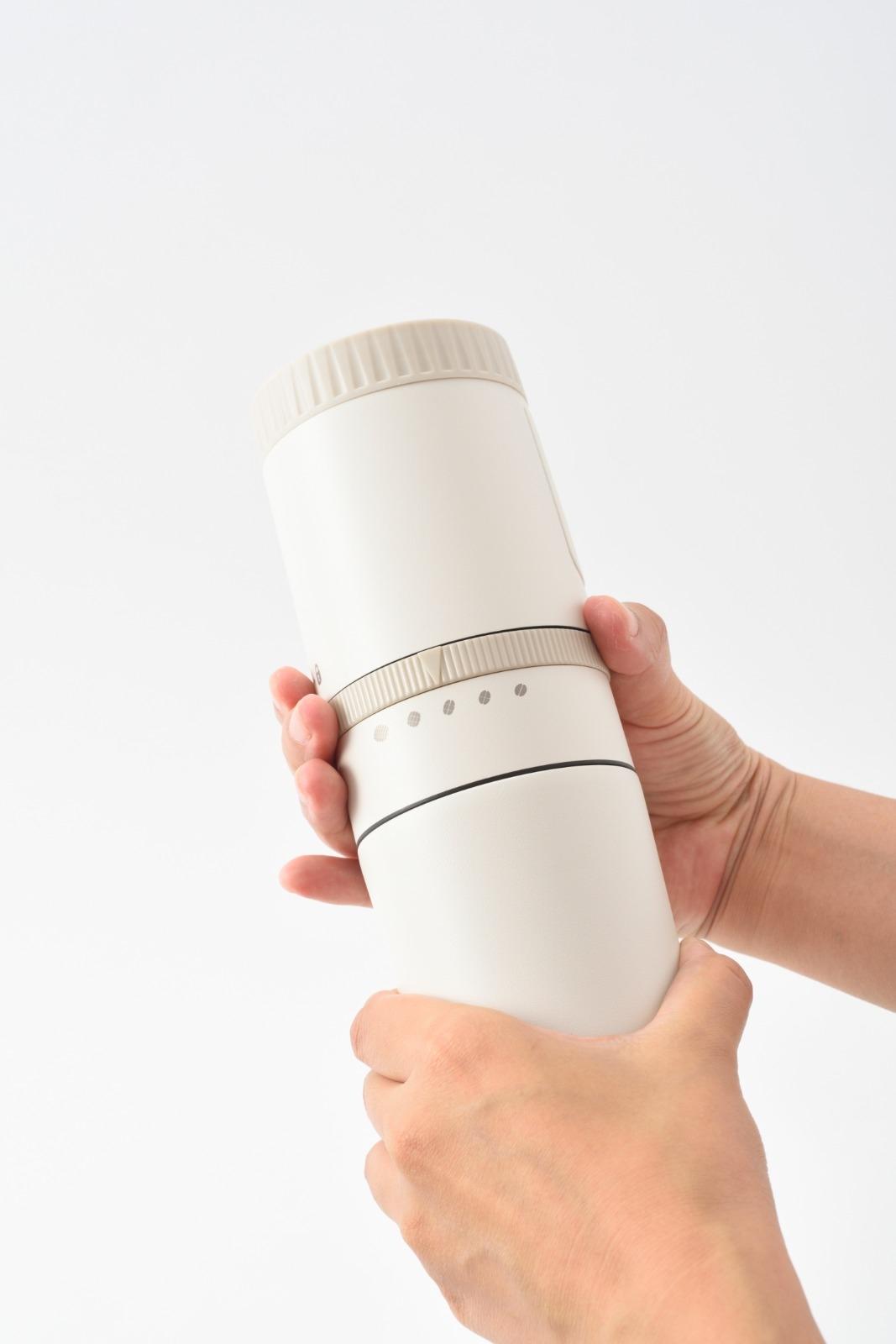 可調節5種咖啡豆研磨粗幼度 USB Type C 充電,內置鋰電池 研磨部件及咖啡杯可組合收納 充電時間: 4小時 (800mAh) - 5V,1A 輸入 保溫杯容量約 200ml