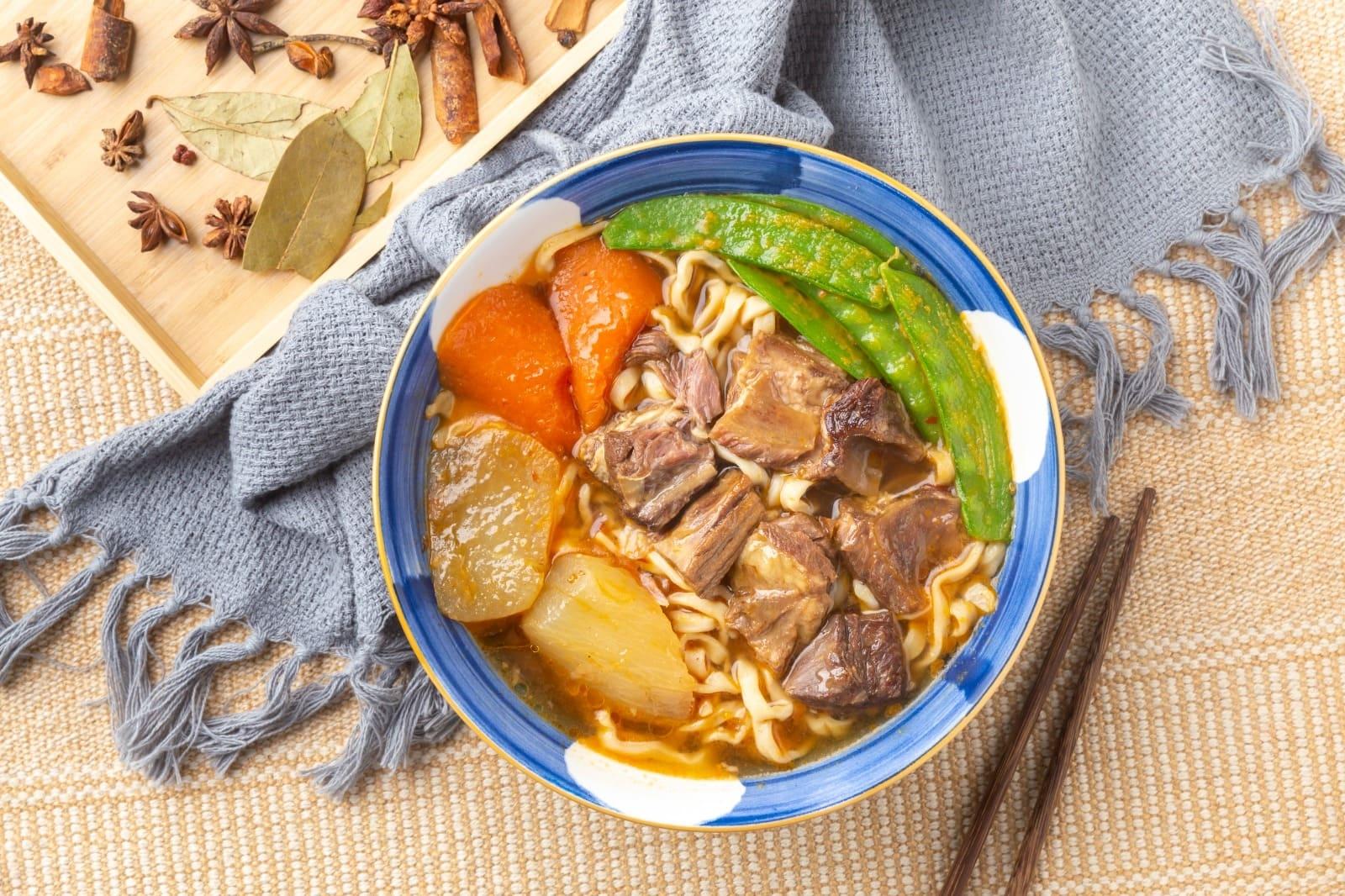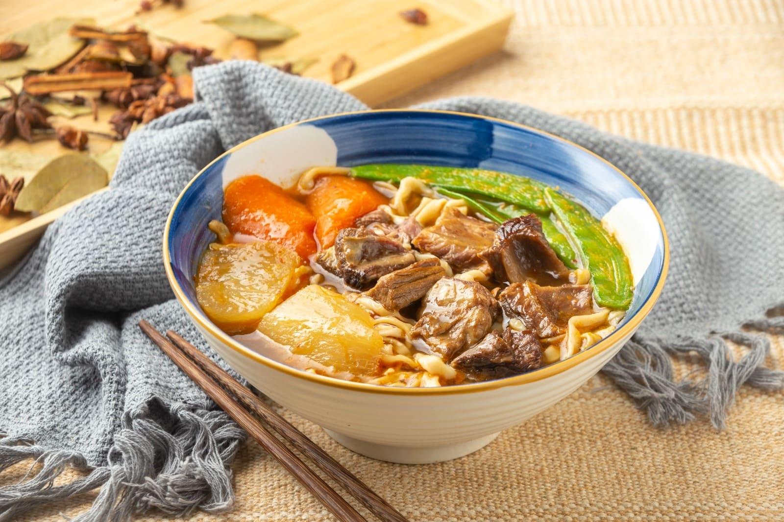 府城極尚牛肉麵 - 使用大量天然的蔬菜、水果;配上特製的鹵包、豆瓣,加上臺灣公賣局的臺灣紅標米酒;經過2天沉澱完成的純牛排骨(牛仔骨)湯頭。牛肉是採用優質牛排骨(牛仔骨),先把牛排骨(牛仔骨)紅燒後,然後一塊一塊的去掉骨頭;全手工製作。 牛肉麵所採用的麵條,是以獨特的配方,特別委託面廠手工製作。除了口感Q彈,特別的掛汁,所以吃起來特別滑順有勁。