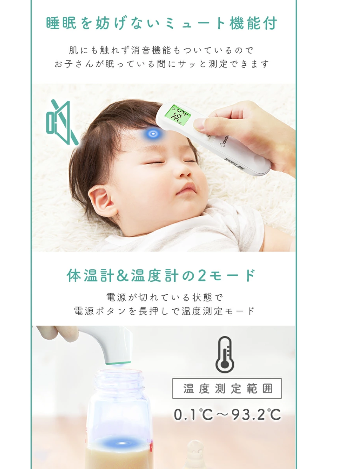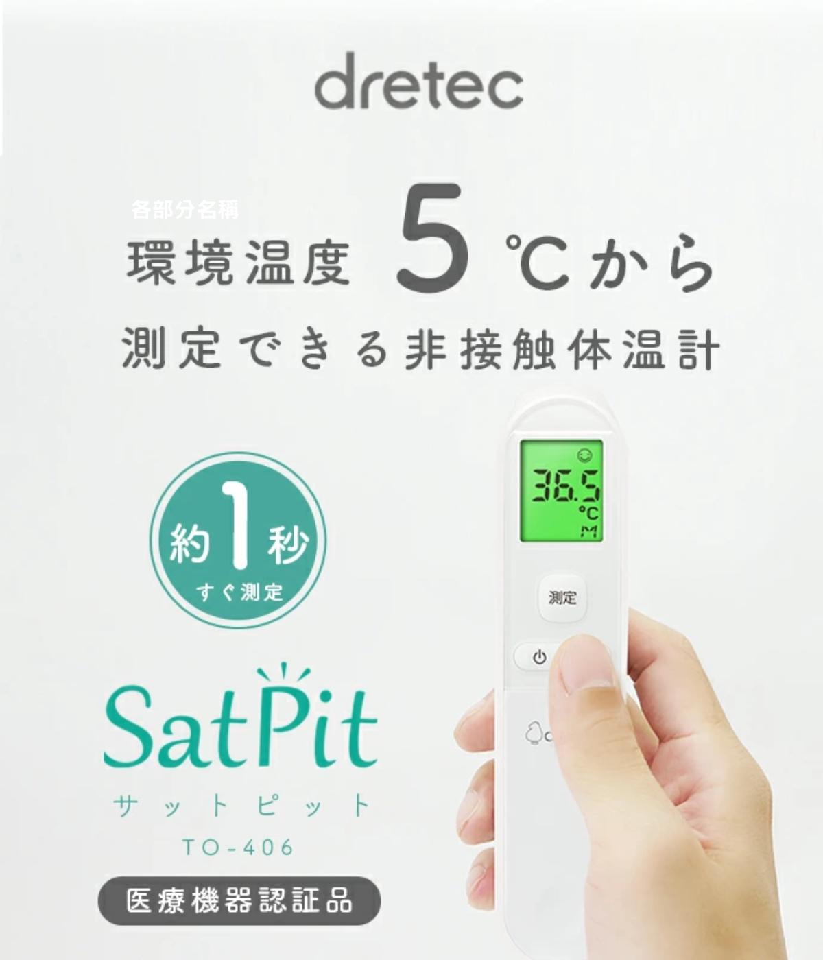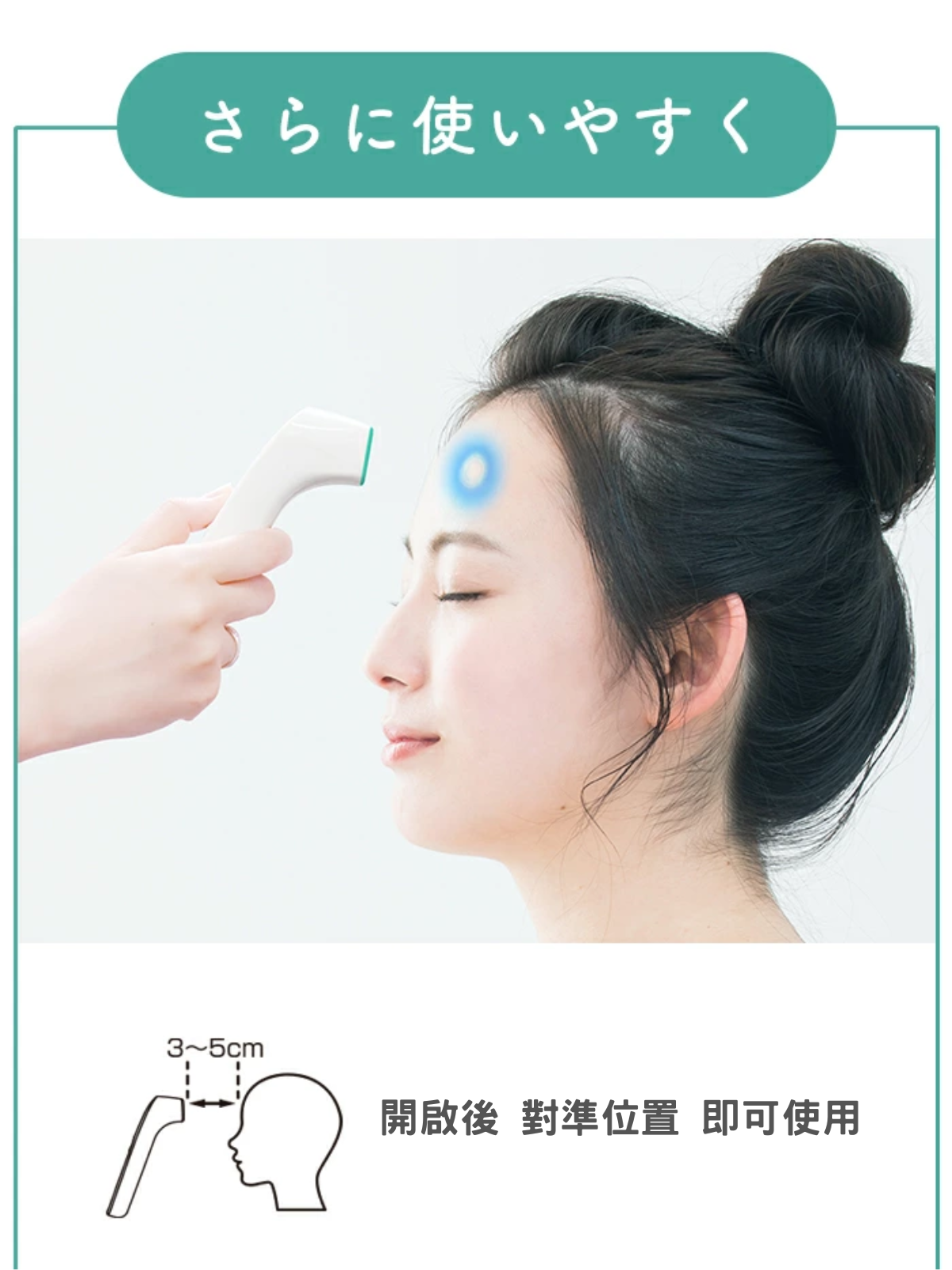 採用日本品牌感測器 非接觸式測量 大約 1 秒鐘即可完成測量 配備 LED 燈,輕鬆查看測量位置 體溫及物體測量兩用 3個顏色顯示溫度結果 9個測量結果顯示 日本醫療器械註冊