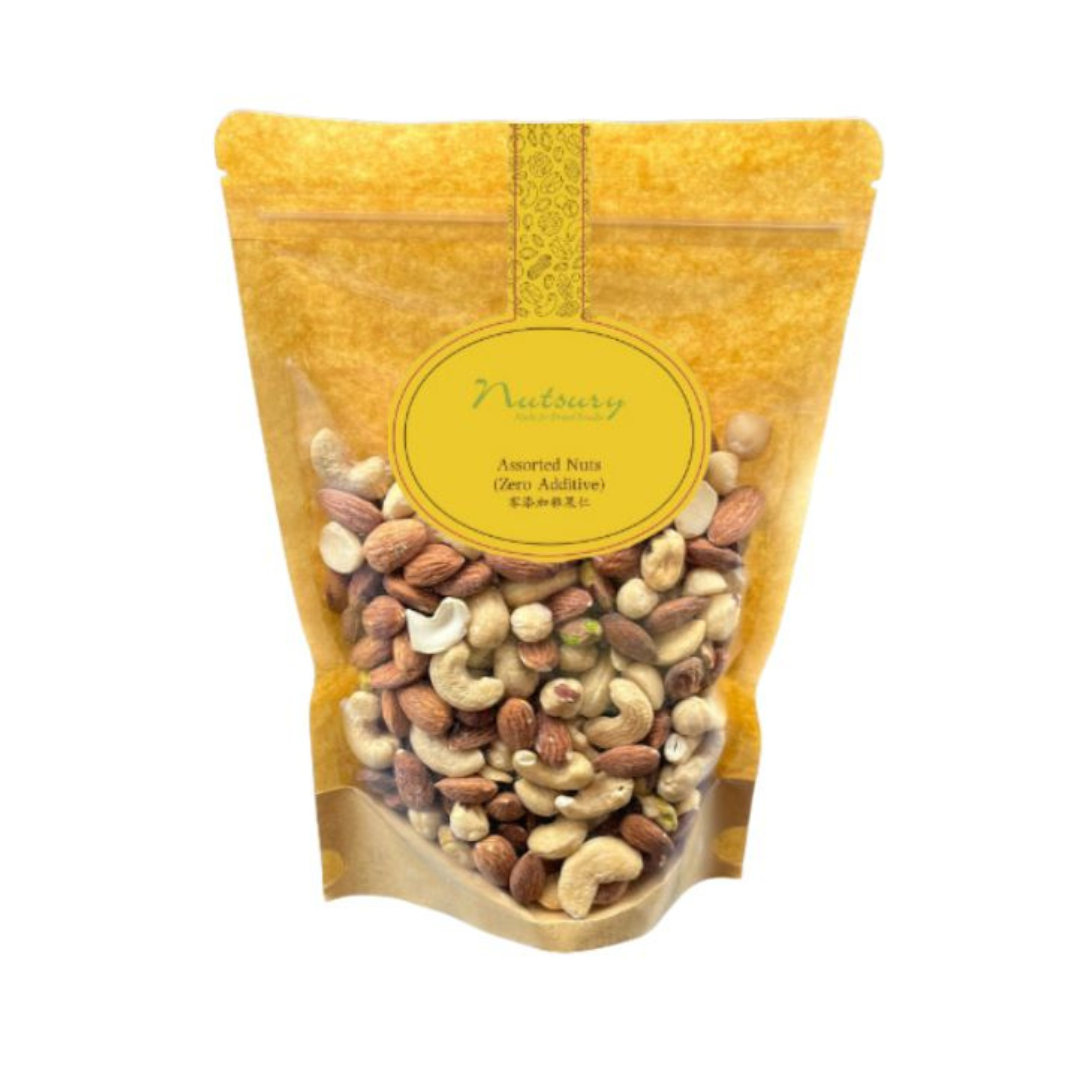 零添加雜果仁無添加額外油、糖或色素,一包內含杏仁、開心果、榛子果仁及 夏威夷果仁。 堅果含有豐富蛋白質和膳食纖維,蛋白質可促進人體生長發育、製造和修補身體組織。 膳食纖維則有助預防便秘和保持腸道健康。 建議每日攝取分量為30g