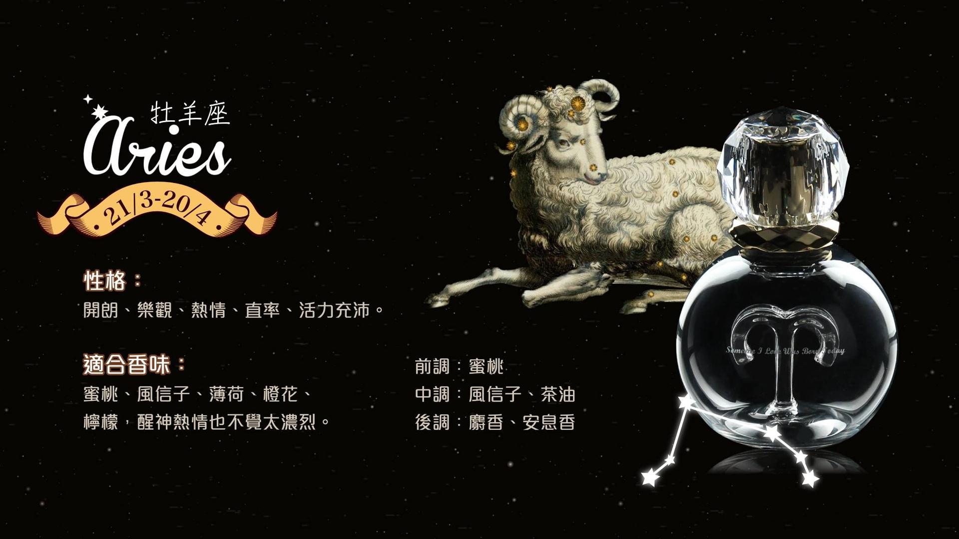 白羊座性格開朗、樂觀、熱情、直率、活力充沛。適合醒神熱情也不覺太濃烈的香味。