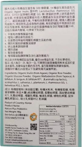 韓國第一款有機認證益生菌 產地 : 韓國 容量 : 3g x 30包
