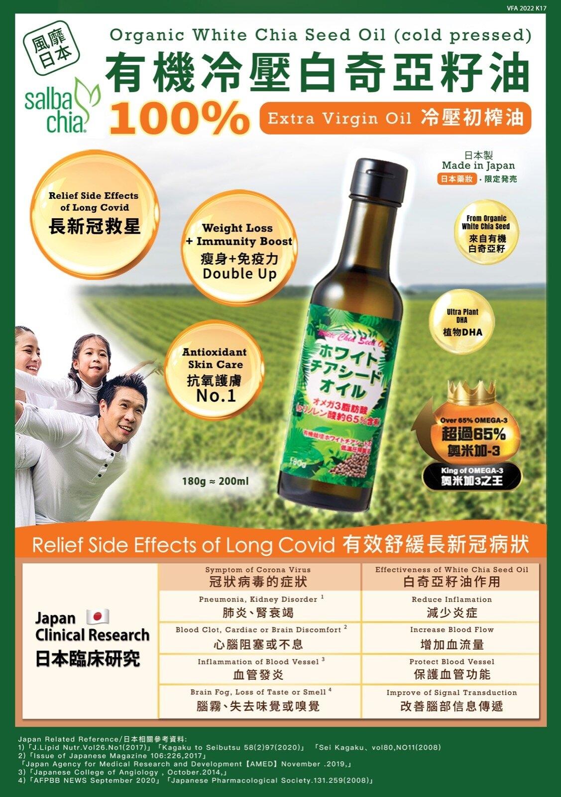 日本臨床研究:有機冷壓初榨白奇亞籽油是長新冠救星
