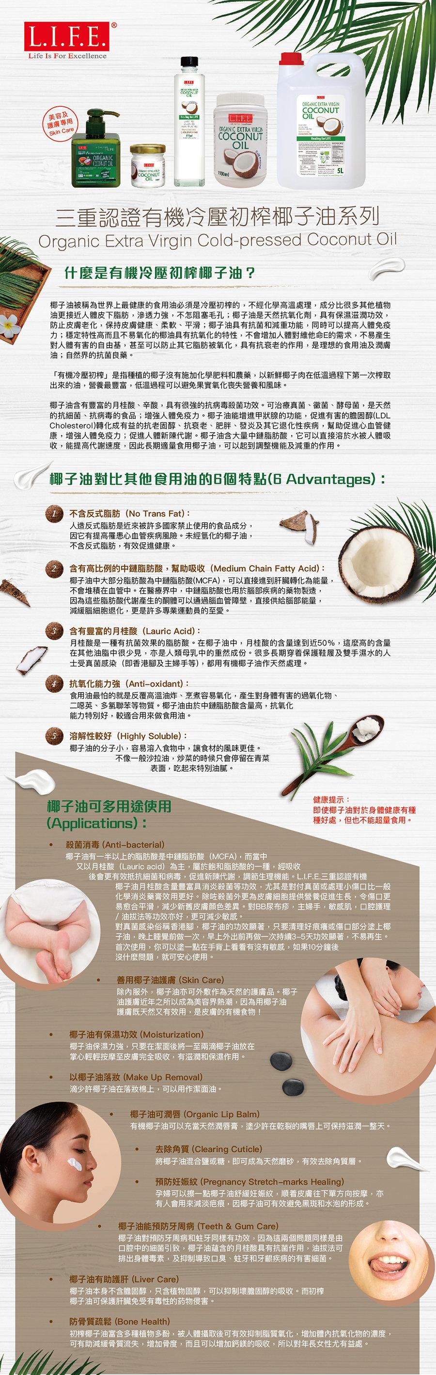 成份: 100% 有机冷压初榨椰子油