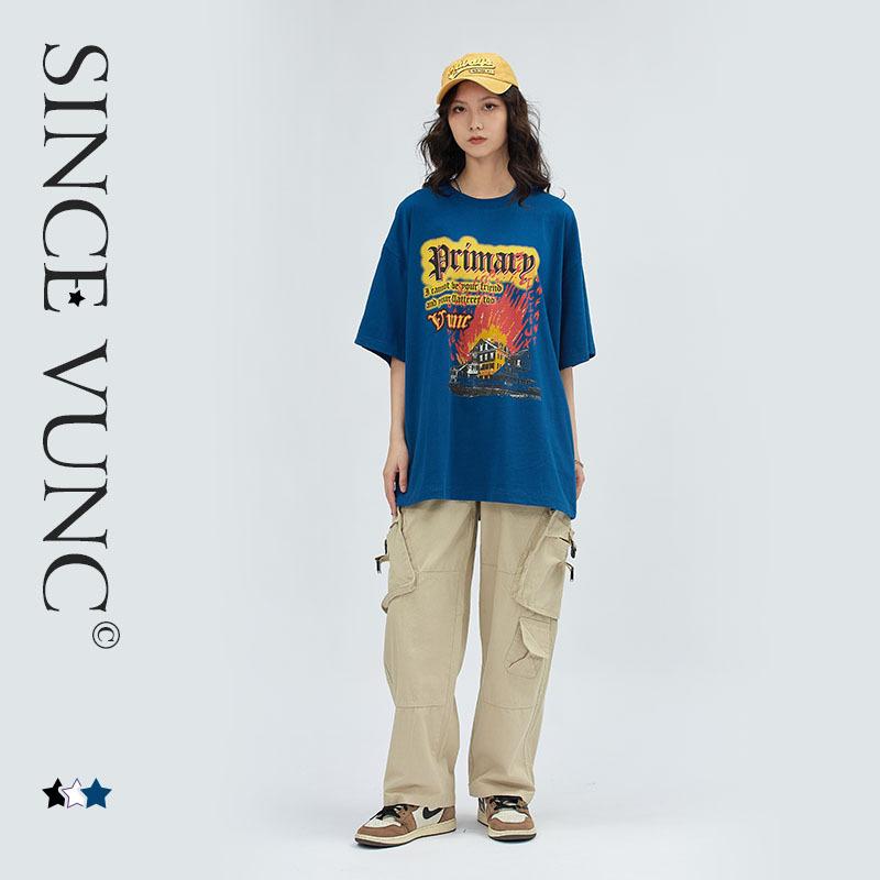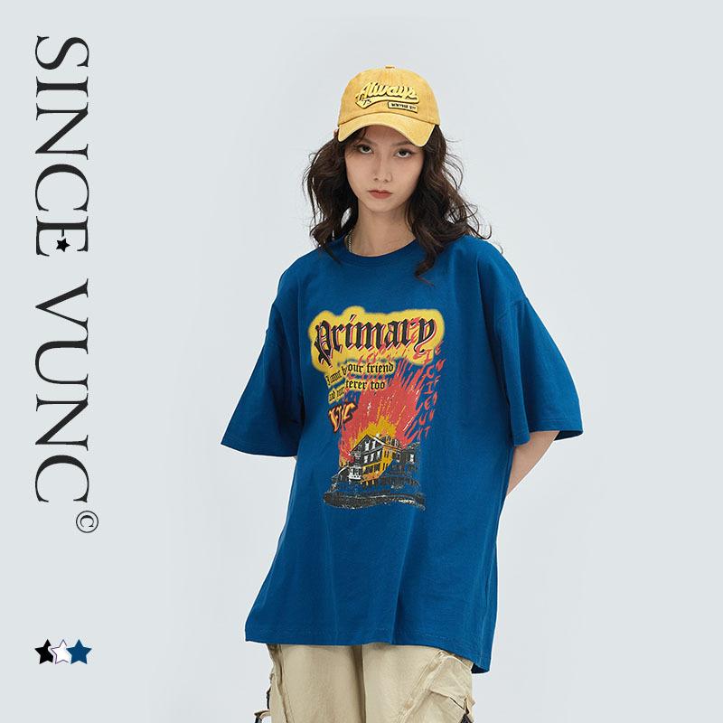 夏季新款T恤 - 個性印花圓領休閑純棉短袖