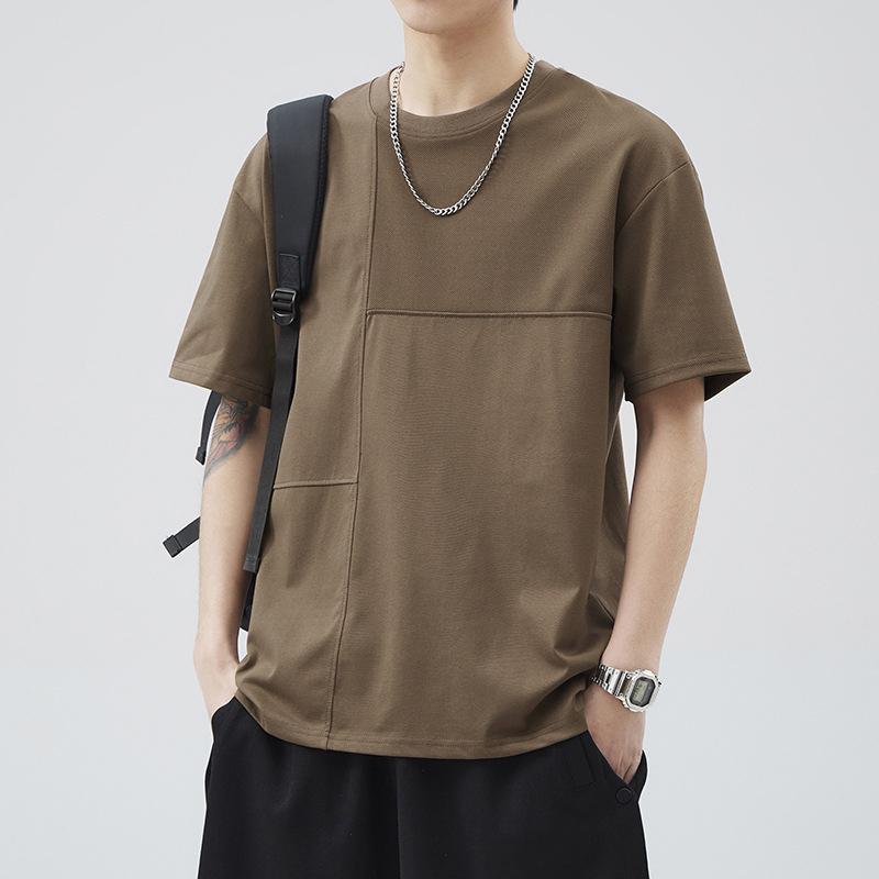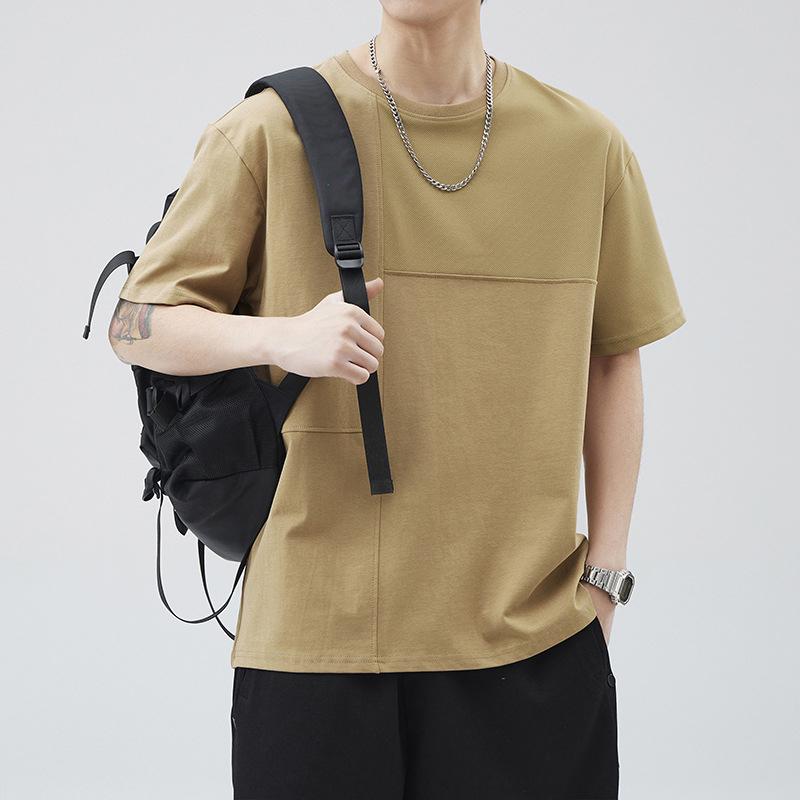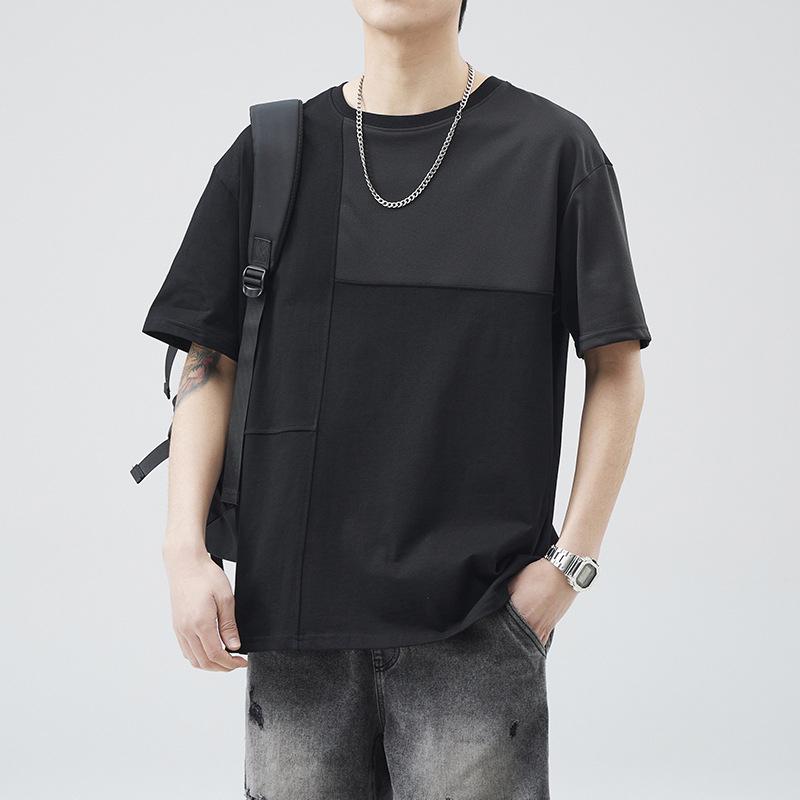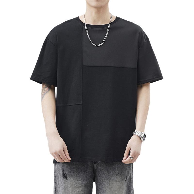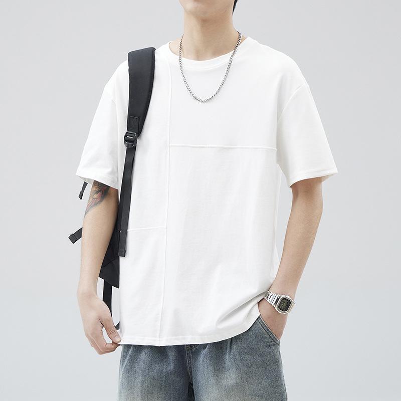 棉質夏季新款簡約短袖T恤 -百搭半袖拼接
