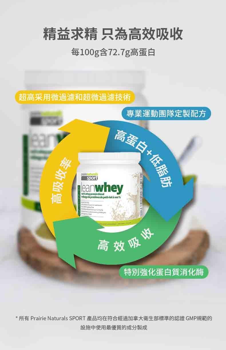 易於消化的蛋白質粉可促進燃燒脂肪並增加瘦肌肉質量。 Lean Whey™ 是純、微超過濾、低溫加工的優質乳清蛋白 專有混合物,不含糖和低脂及超低熱量 比雞蛋、奶酪和肉類更高的蛋白質和更少的脂肪 易於消化和吸收良好的蛋白質來源,富含蛋白質消化酶 有效的飽腹感和代謝調節劑 純天然香料製成,不含糖、麩質、人造香料或色素