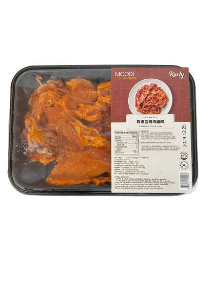 辣椒醬醃烤豬肉是韓國人氣的烤肉之一,採用了豬的後腿肉,切成薄片,口感有嚼勁及鬆軟。配上濃濃的紅辣椒醬拌勻醃制,味道又辣又甜。