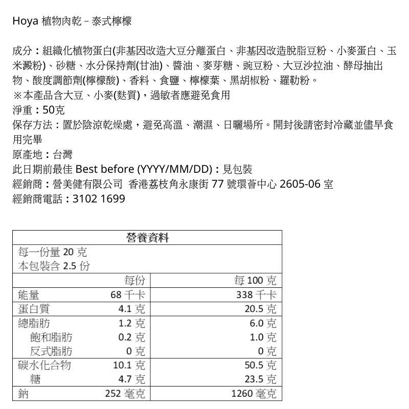 HOYA 植物肉乾 - 泰式檸檬口味 (50g)