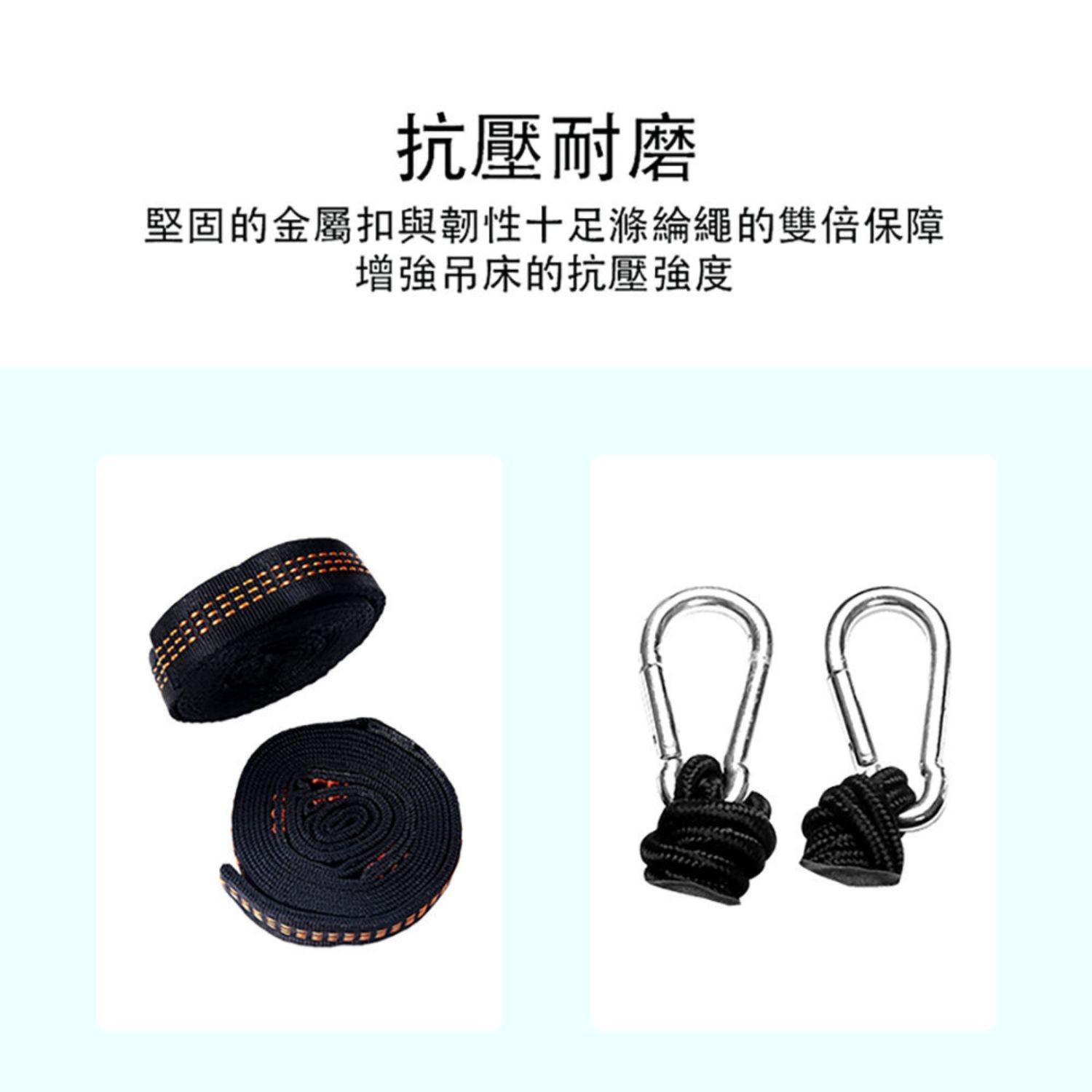 *收納輕便,方便攜帶。纖薄透氣的面料,具有強悍承重,抗撕裂,防側翻設計,連體收納成袋,採用加粗加寬吊牀綁帶,具有保護樹皮不易損傷作用,安全,環保。比市面上一般吊牀更寬更大,多用途性價高,可當吊牀,鞦韆,地墊。是實用,實惠的最佳選擇。
