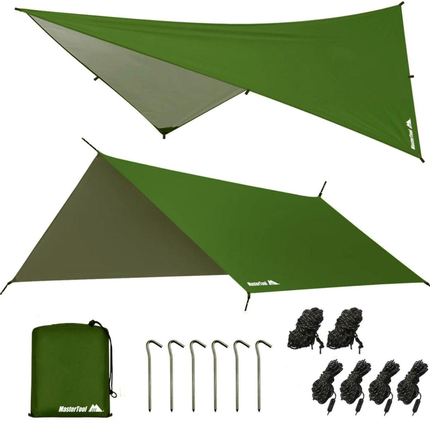 • 藍色單人吊床產品規格:315*145cm • 單人吊床折疊後尺寸:23*13*13cm • 天幕套裝內容: 收納袋 x 1, 天幕 x 1, 防風繩(4米x 2 , 3米x 4) , 風繩扣 x 6, 地釘 x 6 • 此套裝不含支撐竿,支撐竿可用行山捧或野外高物或樹幹代替 • 天幕尺寸:250x250cm
