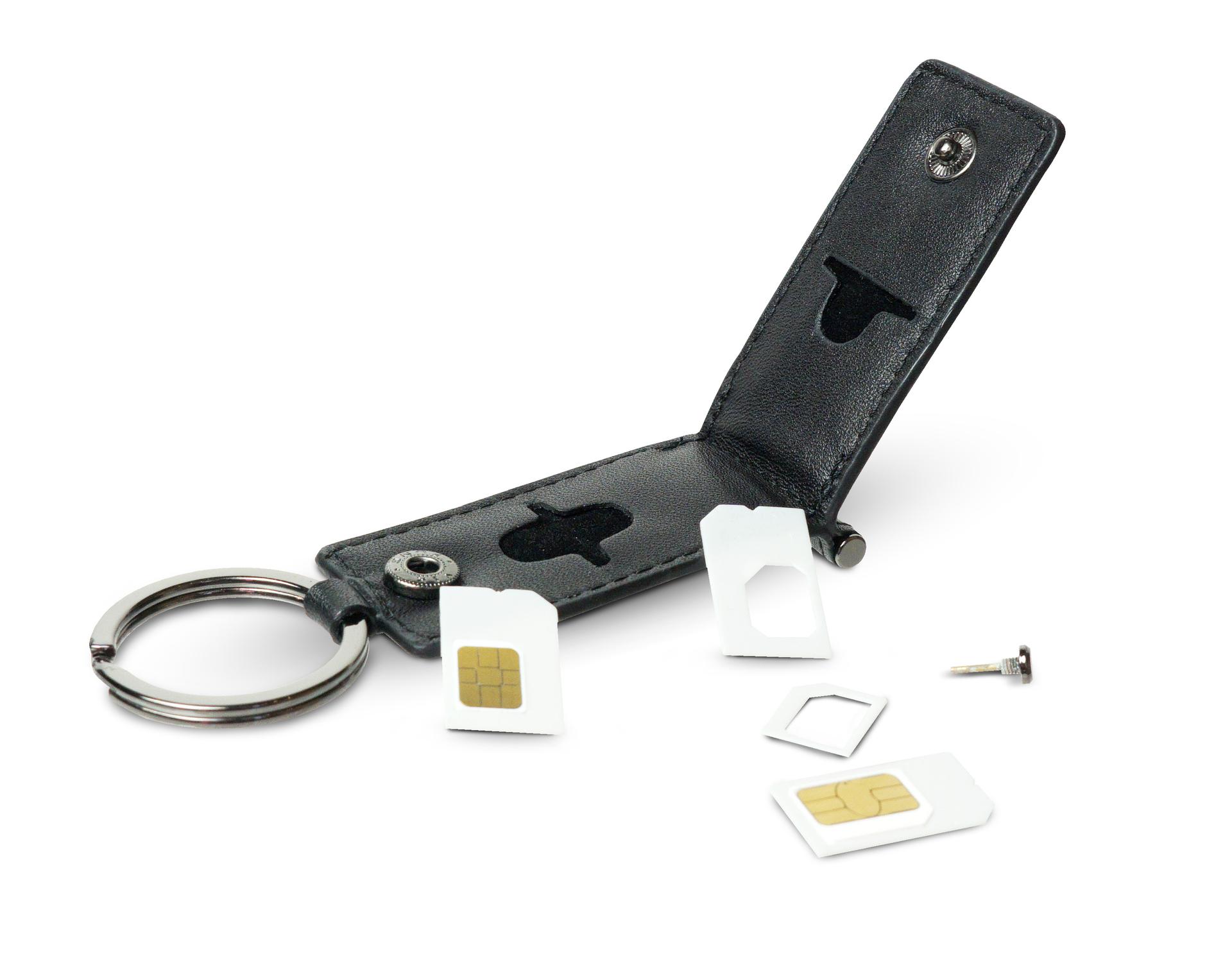 攜帶鑰匙和收藏SIM的最好選擇!採用高品質真皮,簡潔設計讓您展現高級行政人員的風範。能同時存放4張不同種類的SIM卡或Micro SD卡。隱藏取卡針,方便隨時使用。 附有鑰匙圈和3個不同種類的SIM卡轉換器(Micro SIM轉普通SIM , Nano SIM轉Micro SIM, Nano SIM轉普通SIM)。兼具繞線器功能