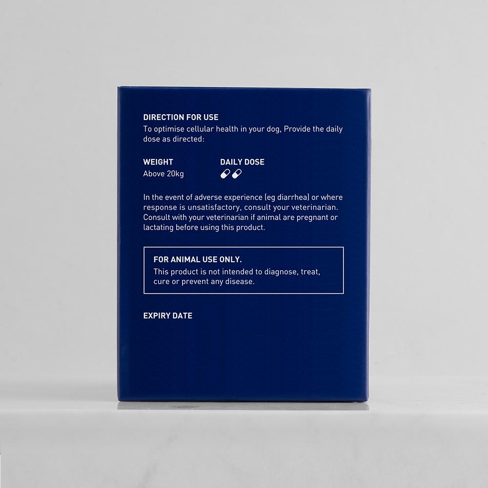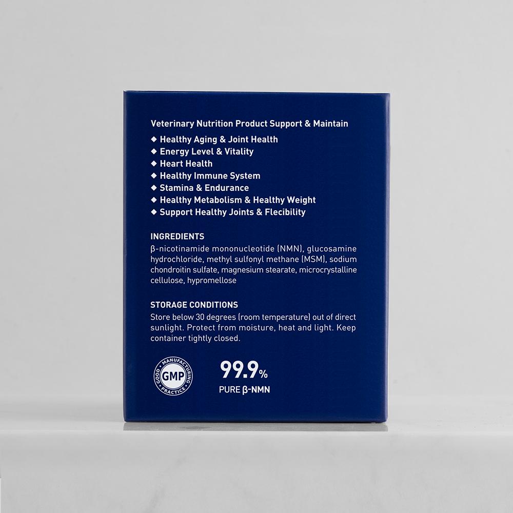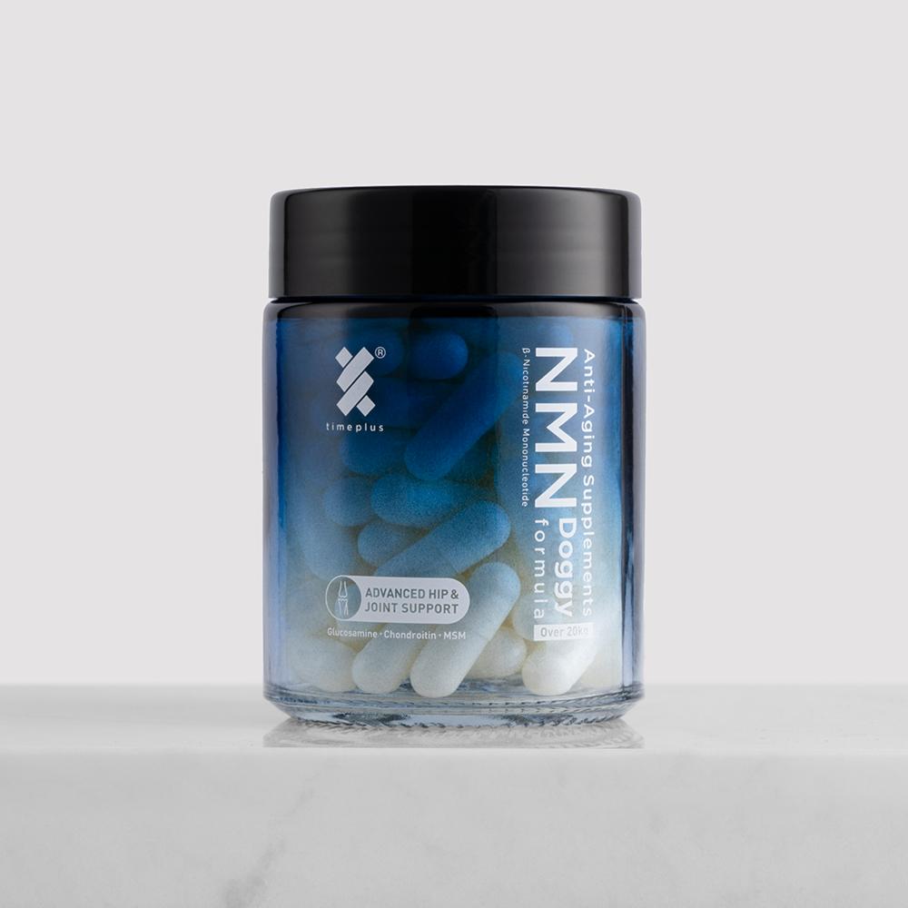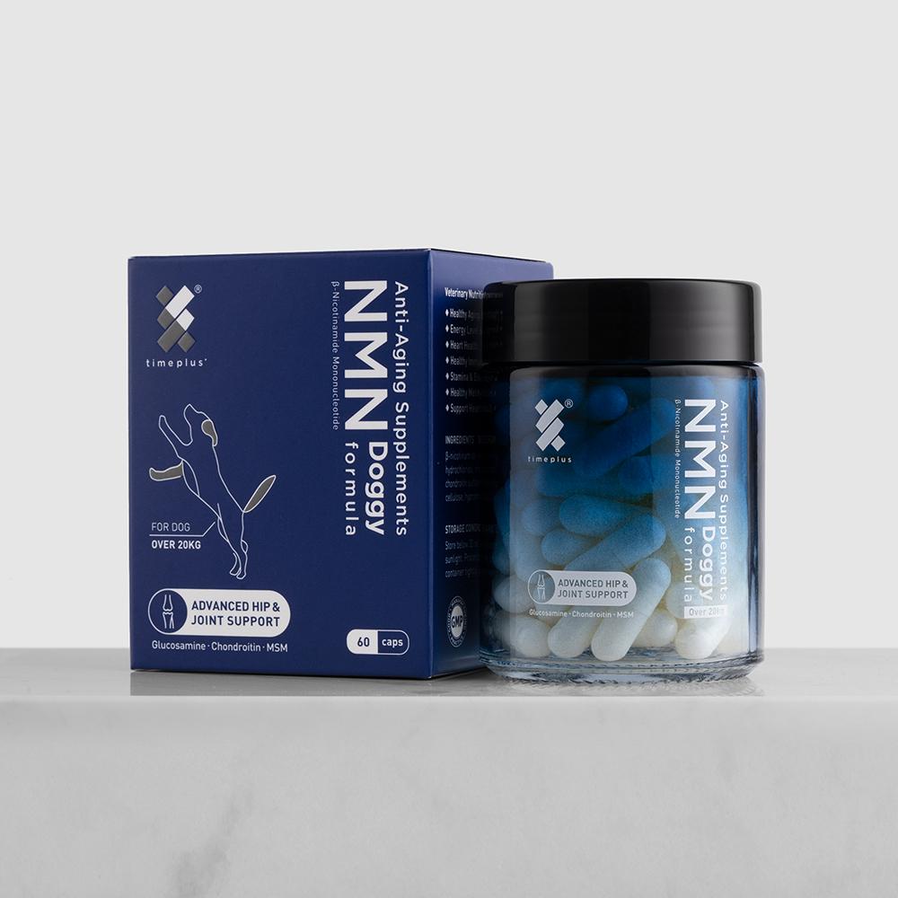 timeplus+ 狗狗NMN命活修護關節配方特配高純度葡萄糖胺,軟骨素和有機硫,有助關節維持健康功能,緩解關節相關痛楚。配合TimePlus+ 99.9%高純度NMN配方,增強毛孩活力健康,提升命力。