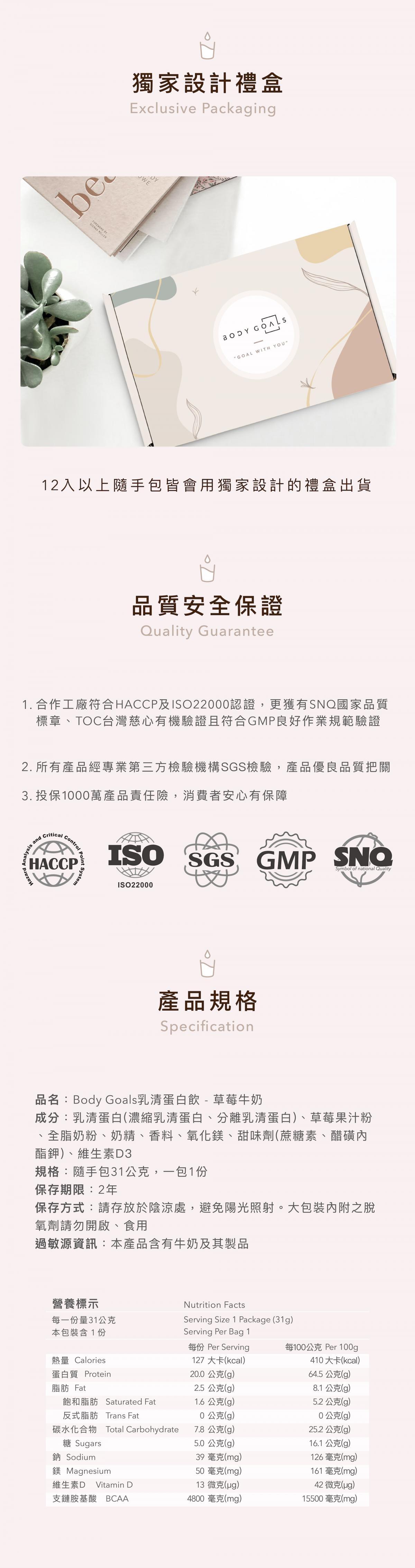 #乳清蛋白饮含有牛奶及其制品 规格:随手包31公克,一包1份 保存期限:2年 保存方式:请存放于阴凉处,避免阳光照射 冲泡方式 200c.c.冰至温热的水皆可冲泡,可以个人喜好调整,但不建议用沸水冲泡