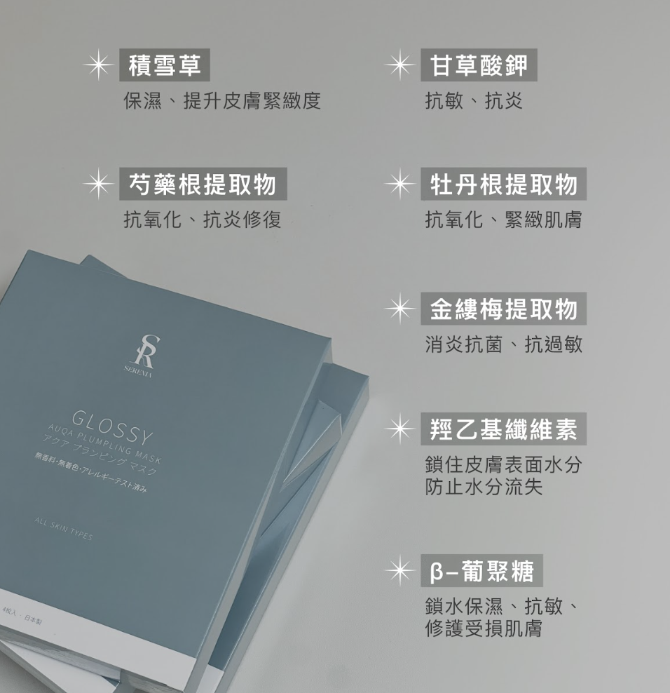 ‣ 甘草酸钾、积雪草、芍药、β-葡聚、金缕梅提取物、牡丹根提取物、神经酰胺