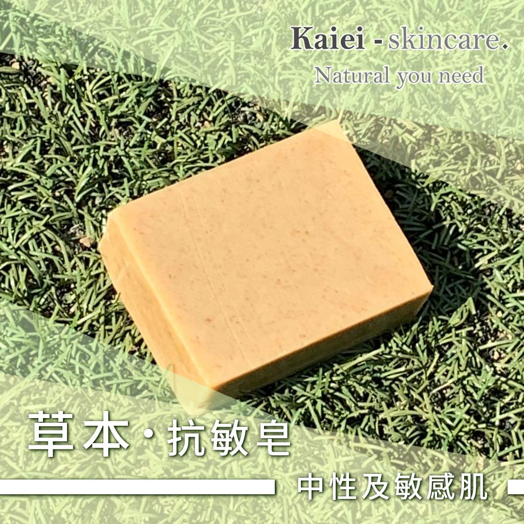 草本抗敏皂 主要成分: 橄榄油、棕榈油、椰子油、澳洲胡桃油、蓖麻油、鱼腥草、香茅、艾草、薄荷、左手香 肌肤适用:中性、敏感肌使用 重量: 90g 澳洲胡桃油有助于促进细胞新生且渗透力强;能修复并滋润干燥肌肤。 配以复方草本能使肌肤油脂平衡、活化肌肤;具消炎、抗菌和抑制微生物生长,以达到舒缓皮肤目的。