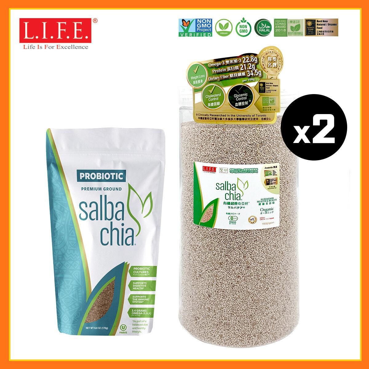 [3件优惠装]有机超营奇亚籽900克密封瓶装•特高奥米加3 x2 +10亿益生菌 BC30 x Salba Chia 超营奇亚籽粉
