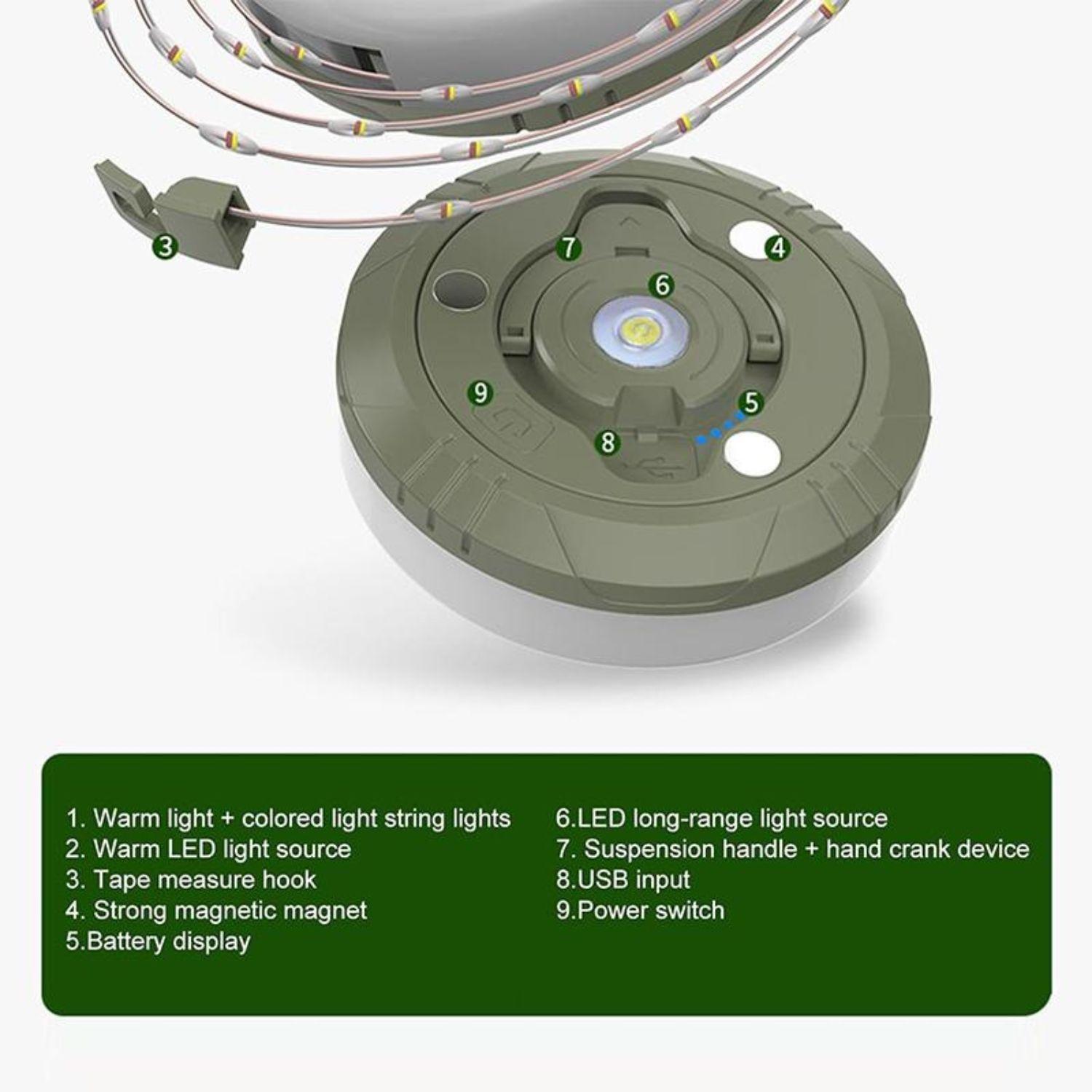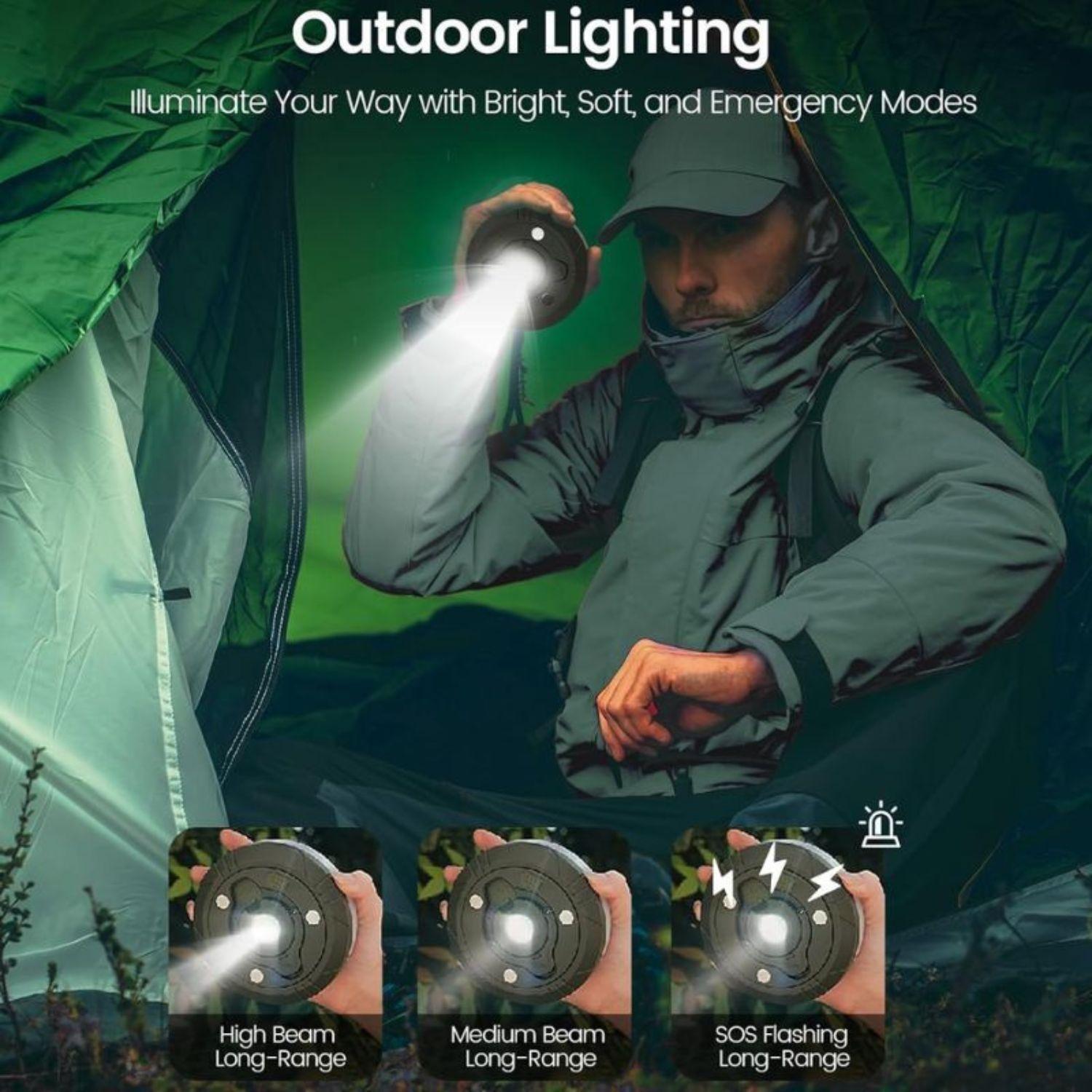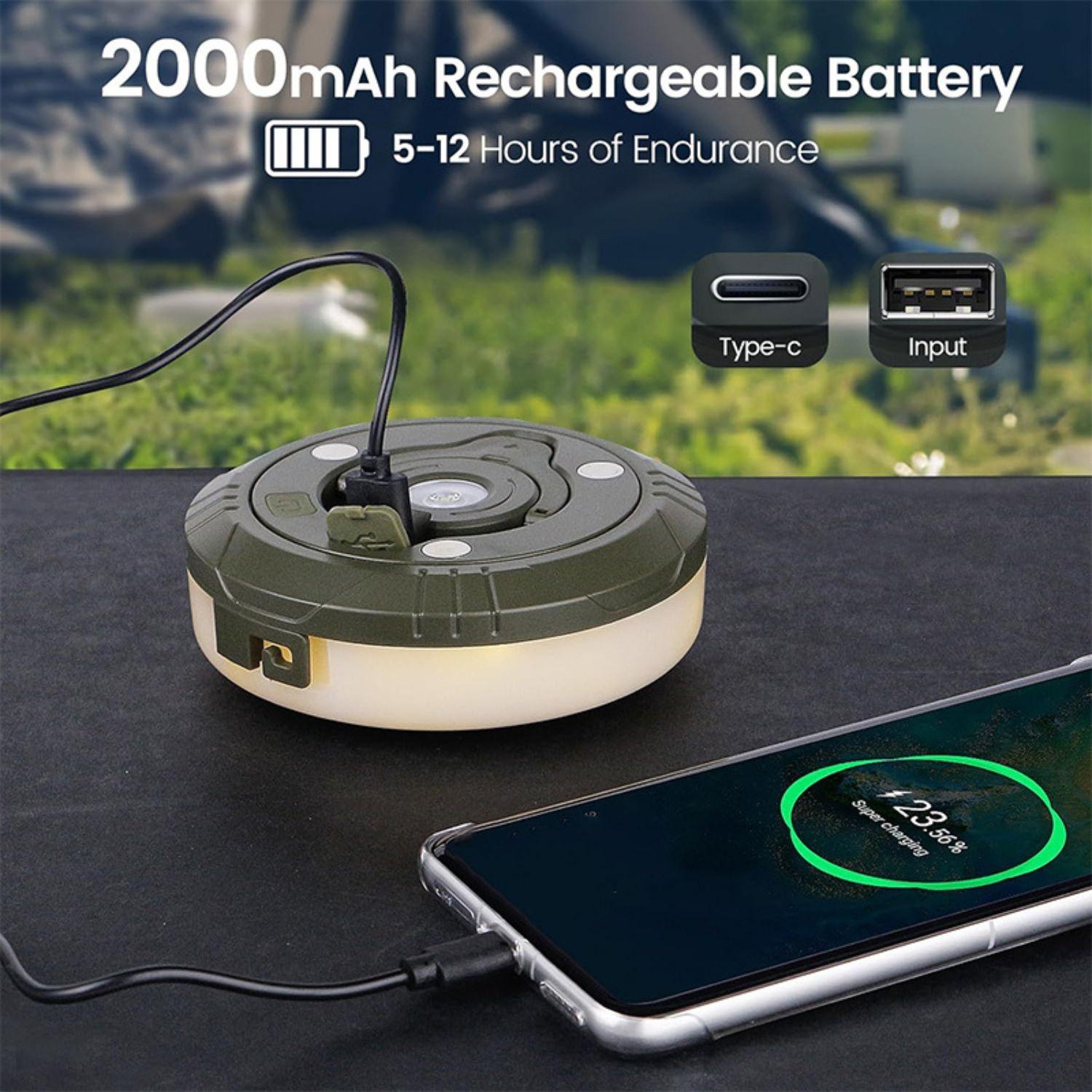 *方便的充电器:帐篷灯可以作为行动电源,随时为您的装置充电。此产品配备2000mAh电池,并具有USB电源输出和TYPE-C快充功能。