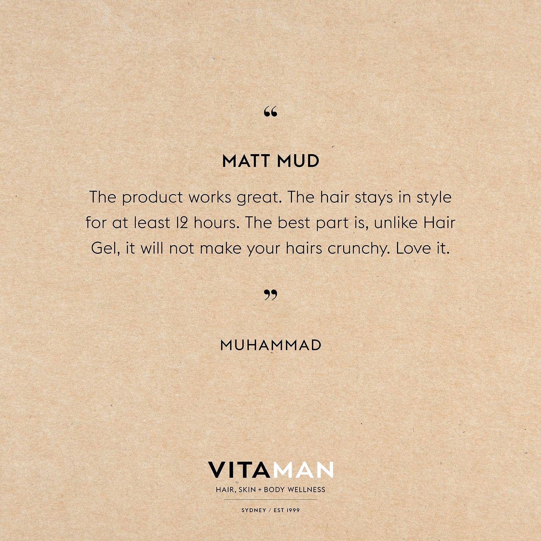 VITAMAN MATT MUD 强力哑光发泥独特之处在于能打造凌乱的床头造型,散发出自信的气息。这款哑光定型产品能增加头发的体积和厚度,同时仍保持控制力,并带有清新的薄荷和熏衣草的海洋香气,为您带来干净而充满活力的效果。