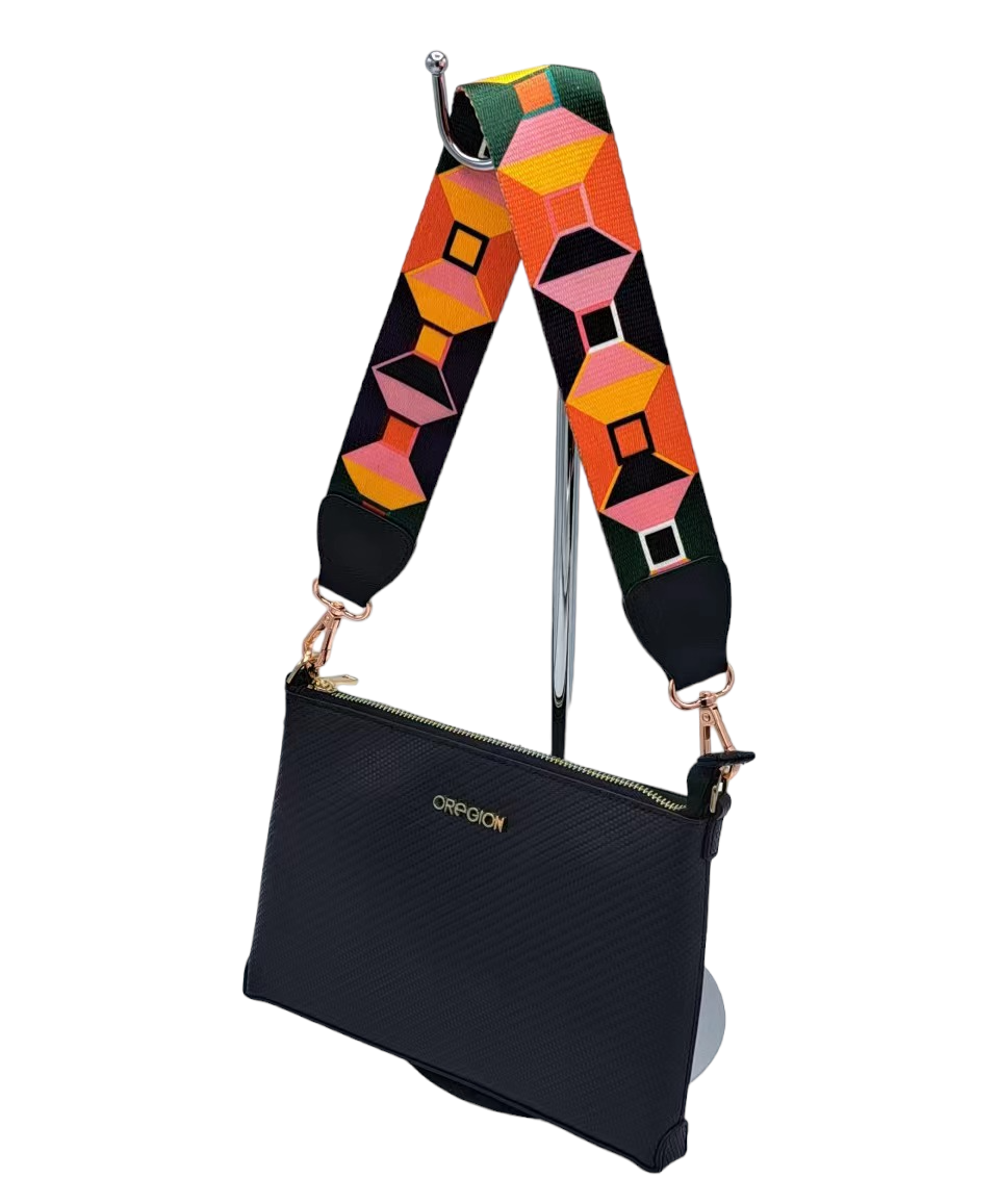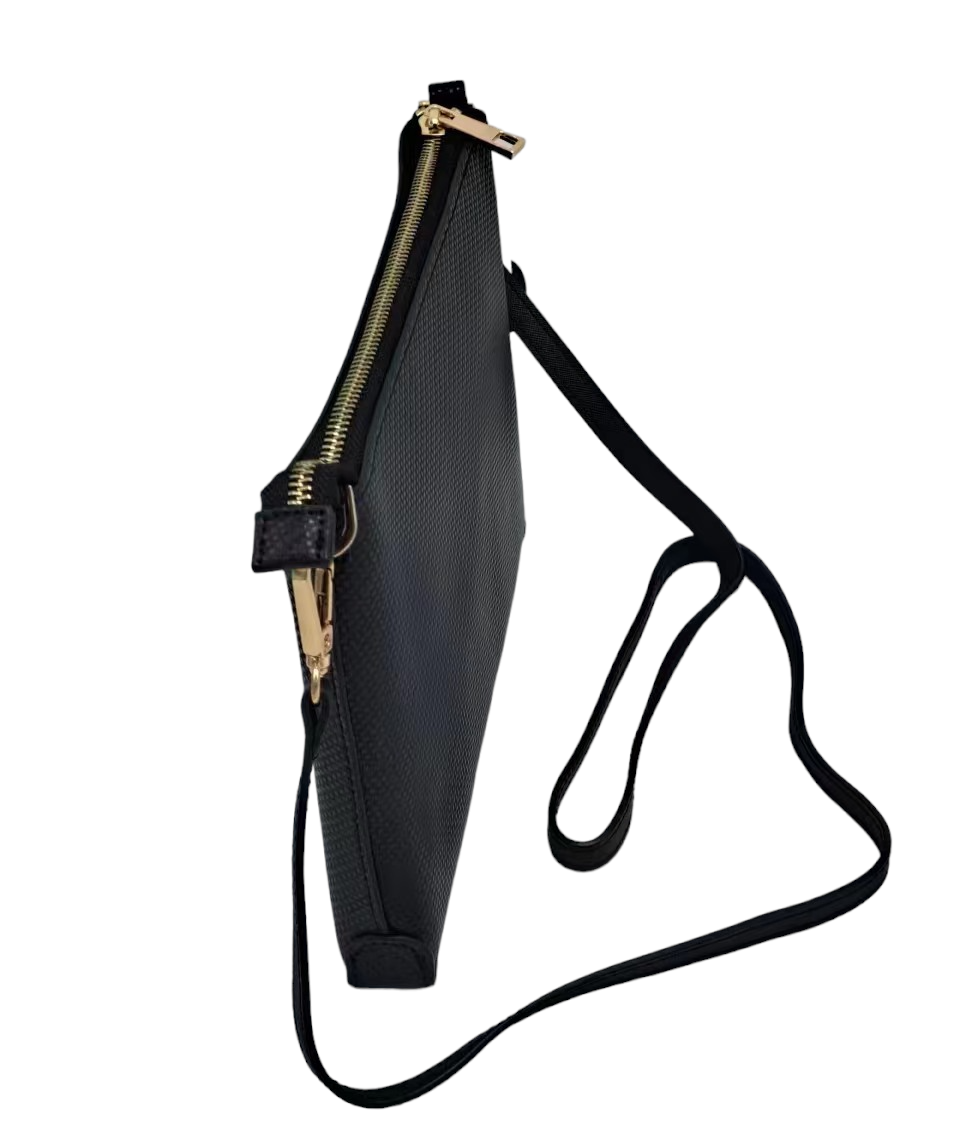 这款黑色斜背包, 容量很大,可以装很多东西。 可以选择放置小型或大型物品。 例如,小硬币、钱包或有长钱包的护照盒。 它轻盈舒适。 是旅行、职场、休闲的最佳选择。 轻松适合任何穿着